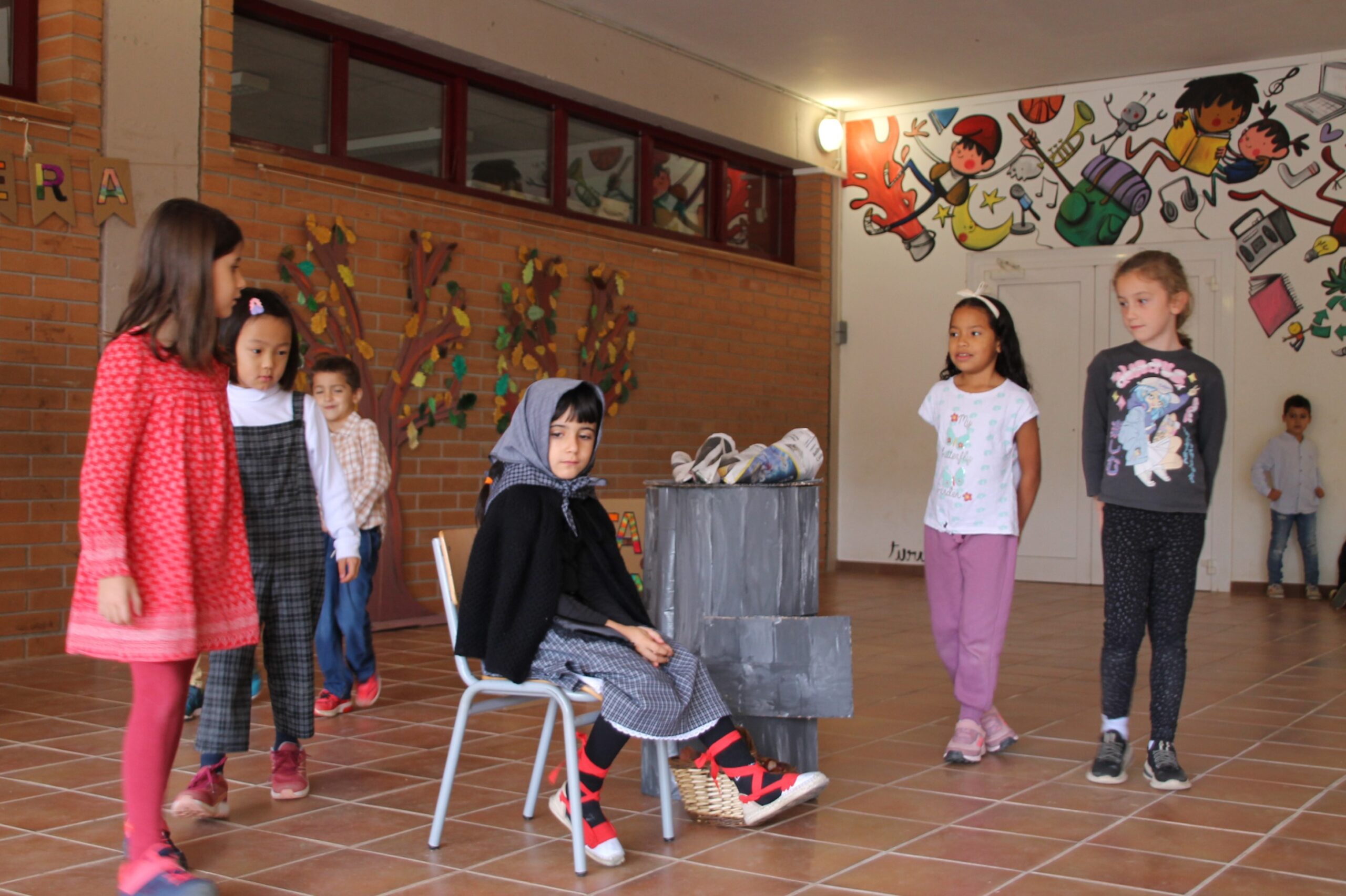 Avui a l’escola hem celebrat la Castanyada cantant cançons i fent la representació de l’obra de teatre “Tan és com era la vella Castanyera” per part de l’alumnat de P1.