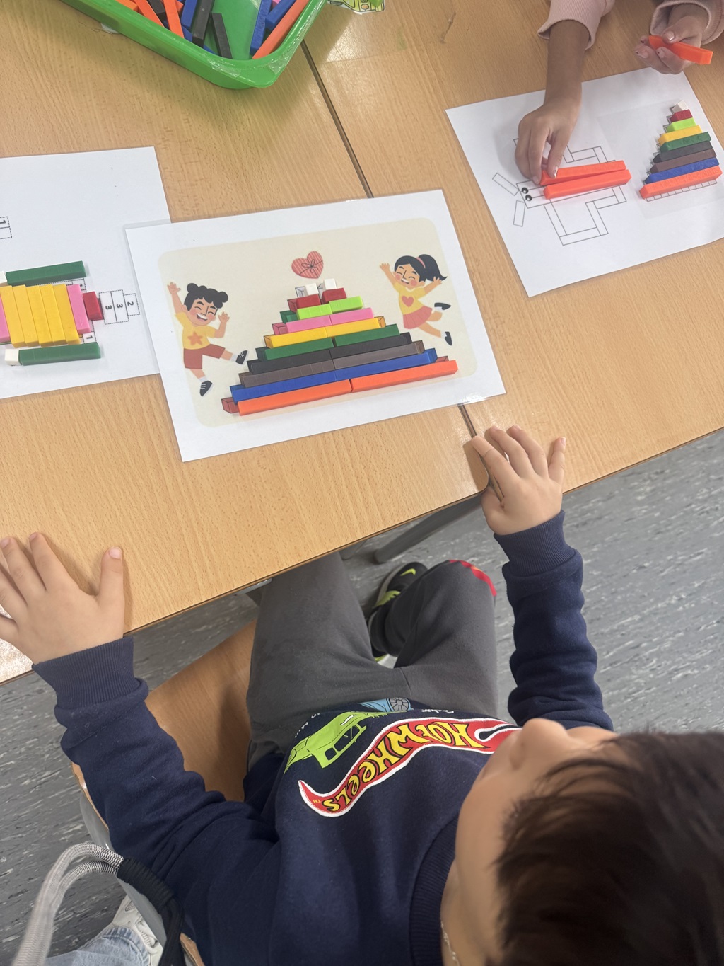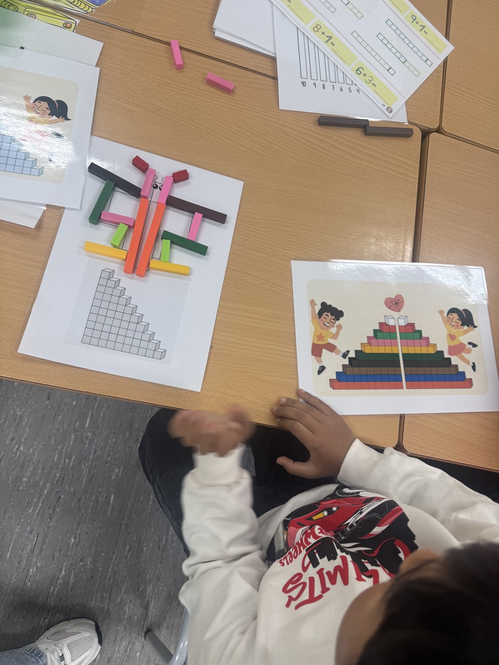 Aquesta setmana hem jugat amb regletes, un material que ens permet construir, comptar, descompondre nombres… i jugant aprenem molts elements matemàtics.