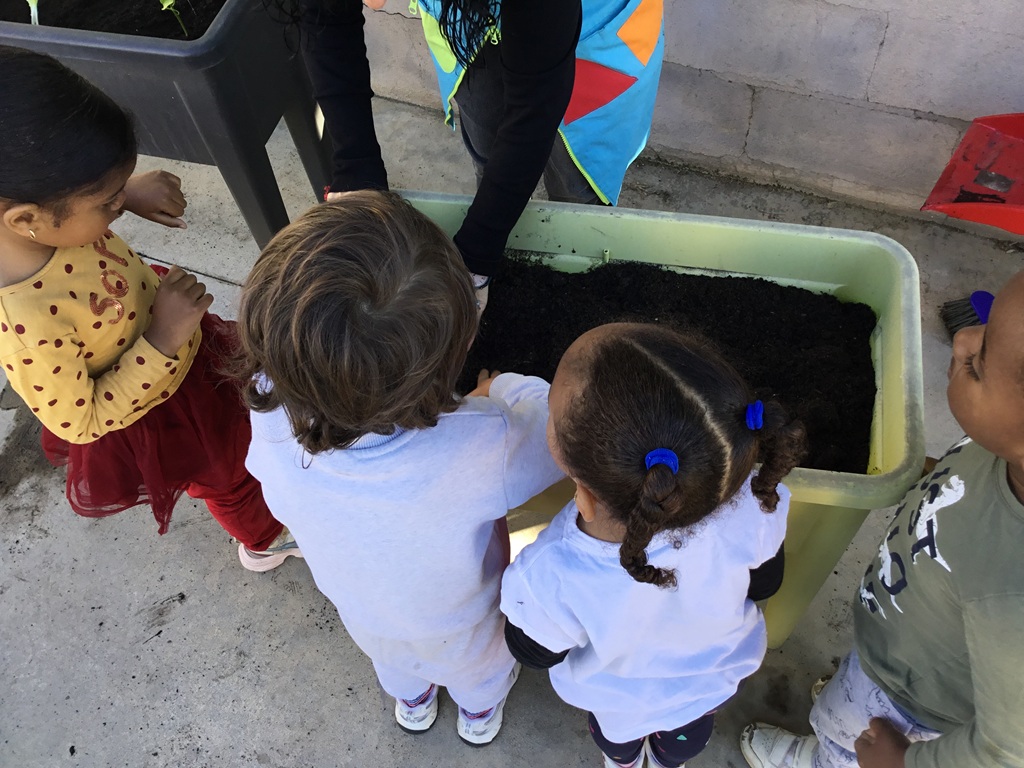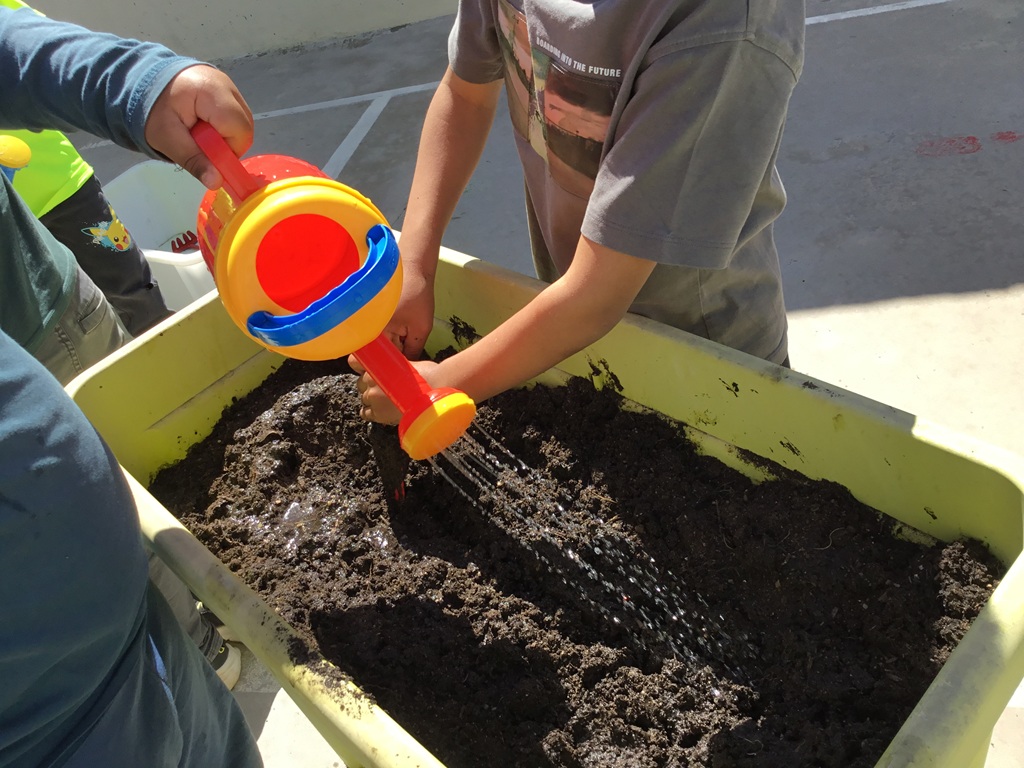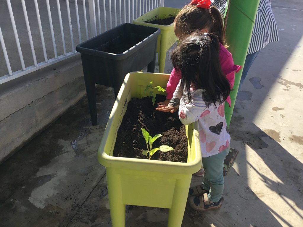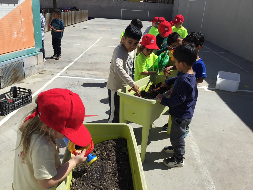 Ja hem engegat l’hort de l’escola, i aquest cop hem sembrat: raves, albergínies, pebrots i enciams. Hem fet d’agricultors, i amb les pales hem preparat la terra i després l’hem mullat i remenat. Després de mica en mica hem anat sembrant els planters que teníem, i ara ho cuidarem cada dia i ho regarem perquè cuidar del nostre hort ens agrada moltíssim.