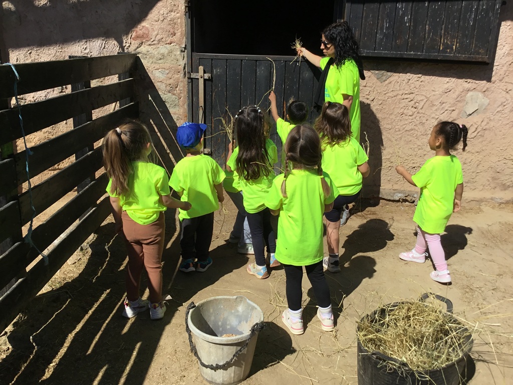 Hem anat a passar el dia a una granja i hem pogut veure, tocar i donar de menjar animals com les gallines, el gall, la vaca Bruna, les cabres i les ovelles, el conill i les oques i els à necs. També hem vist un ruc i un cavall.