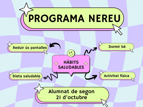 El dimarts 21 d’octubre, l’alumnat de 2n van viure una jornada molt especial i saludable gràcies al programa Nereu. A primera hora del matí, vam repassar tots junts els hàbits saludables que ens ajuden a tenir una salut de ferro: dormir bé a la nit, reduir l’ús de pantalles, fer activitat física regularment i seguir