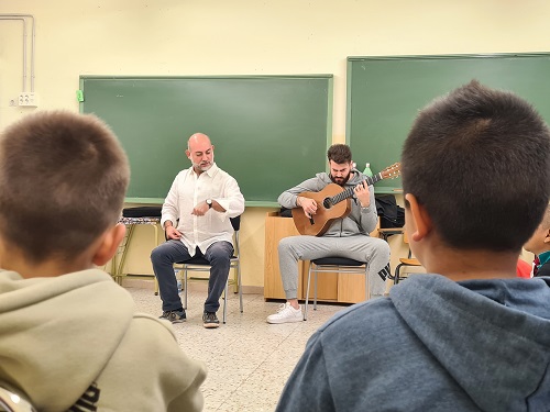 La setmana passada vam rebre la visita de dos educadors i artistes gitanos, el Sebastian i el Falete, de la Fundació Pere Closa. Acompanyats de música de guitarra en directe ens van narrar i escenificar un conte popular gitano.