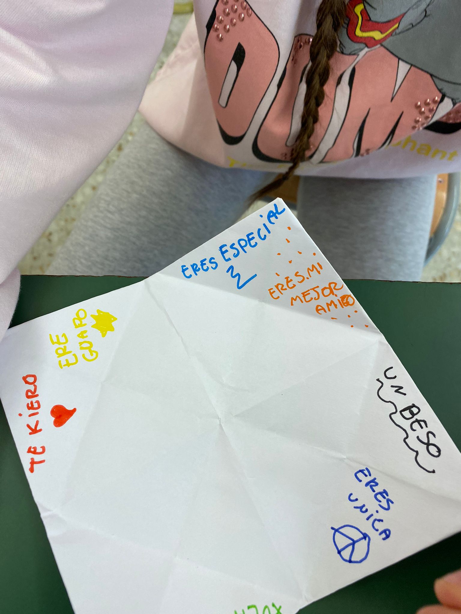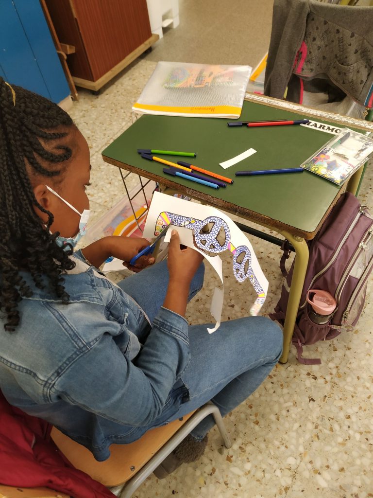 Per acabar, van fer una manualitat que fos significativa per aquest gran dia. L’alumnat de 3er va construir unes ulleres que les van batejar: LES ULLERES DE L’ALEGRIA. I l’alumnat de 4rt va fer el famós “comecocos”, posant paraules boniques al seu interior.