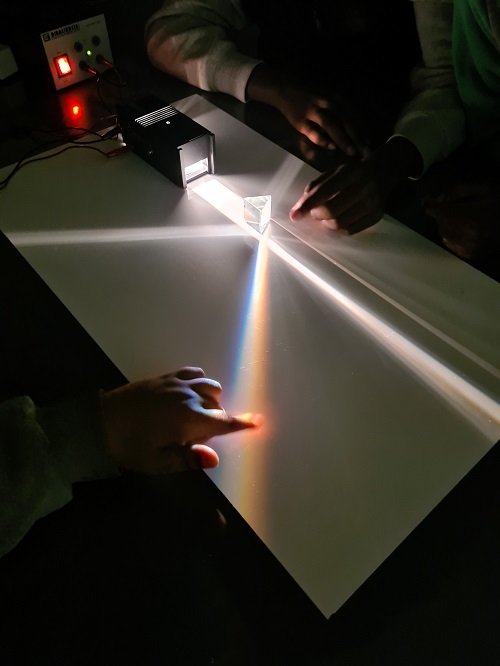L’alumnat de sisè hem anat al CaixaForum a fer el taller de «Llum i color». Hem pogut veure quines són les propietats de la llum i els colors. Hem experimentat amb les lleis de la reflexió i la refracció, la descomposició de la llum blanca, etc.