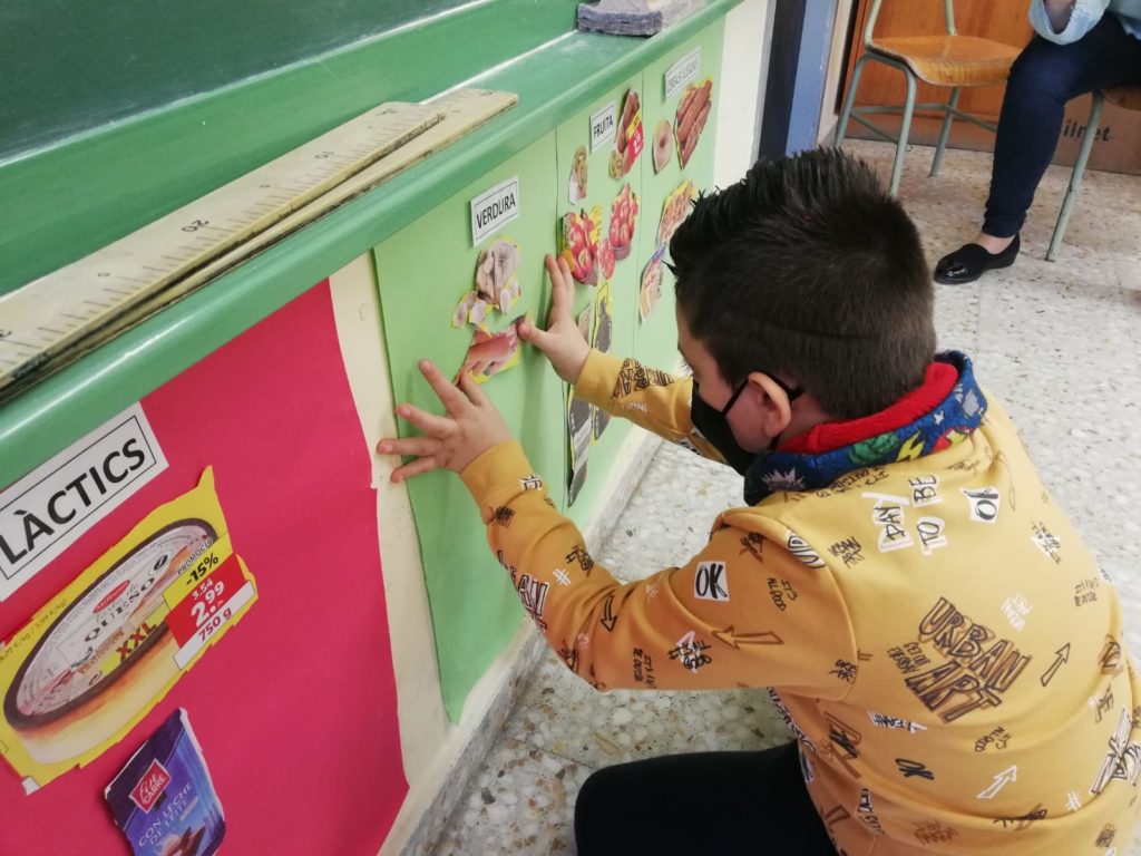 Durant el segon trimestre els i les alumnes de primer hem treballat els aliments. Hem fet un mural per classificar els aliments en si son d’origen animal (carn, peix, làctics) o d’origen vegetal (fruites, verdures I cereals).