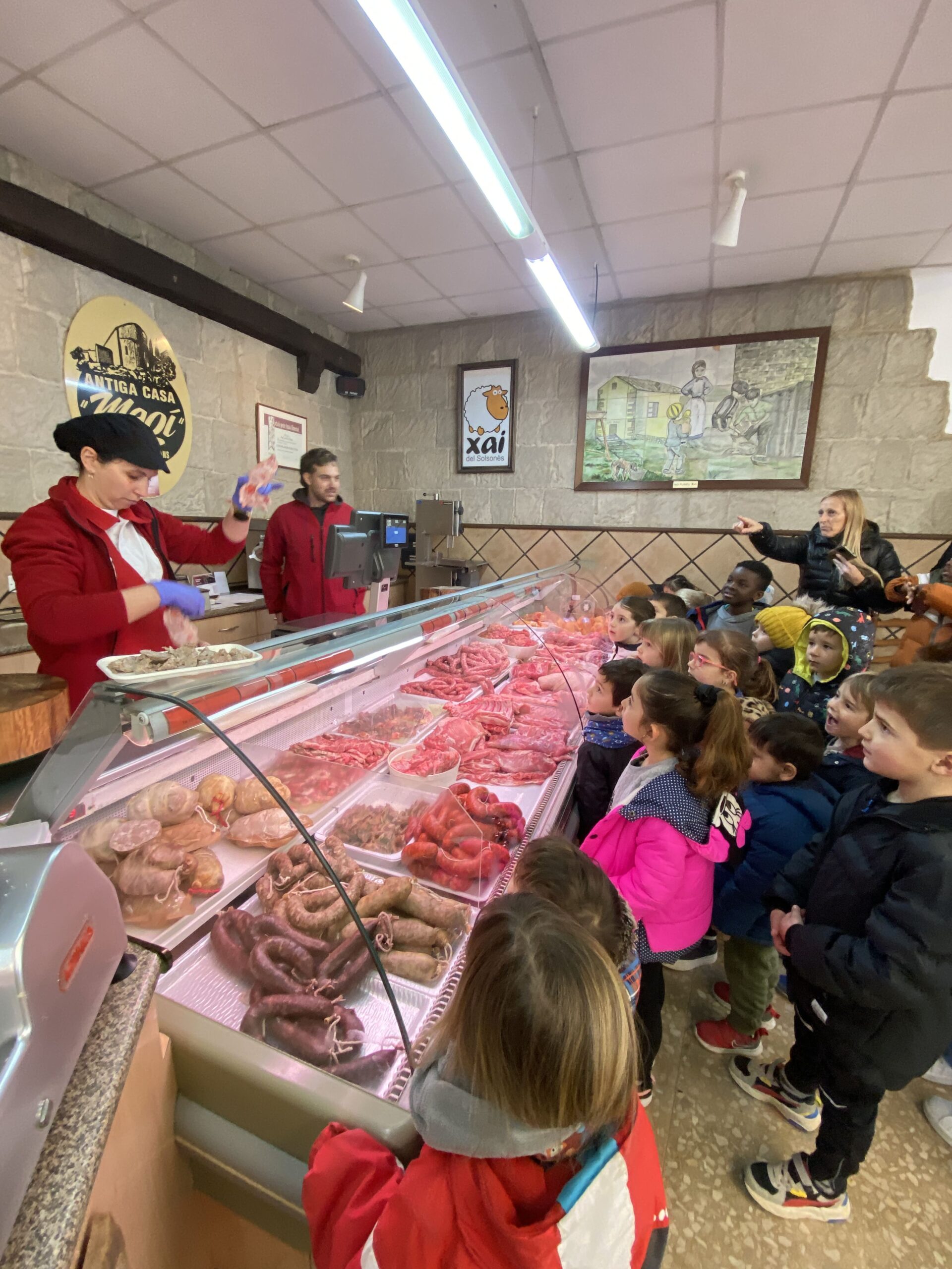 El passat 12 de Març els nens/es d’Infantil 3,4 i 5 anys, vam visitar l’antiga casa Magí, per conèixer l’ofici de la Gisela, la mare de la Leila. L’antiga casa Magí és molt coneguda al poble de Torà pels seus embotits casolans i tot tipus de carns. El Jordi que és empresari i la Gisela que és carnissera, ens van rebre amb un petit tast dels embotits que elaboren i venen, estaven boníssims! A més a més, la Gisela i la Roser ens va ensenyar com fan les hamburguesses de pollastre, que de fet, són les hamburgueses que els nens/es de l’escola Sant Gil, mengen al menjador de l’escola. També vam tenir l’oportunitat de fer les nostres croquetes de pollastre i la Marga, la cuinera de l’escola, ens les va fregir i ens les vam poder menjar per esmorzar! Moltes gràcies Jordi, Gisela, Roser i Marga!