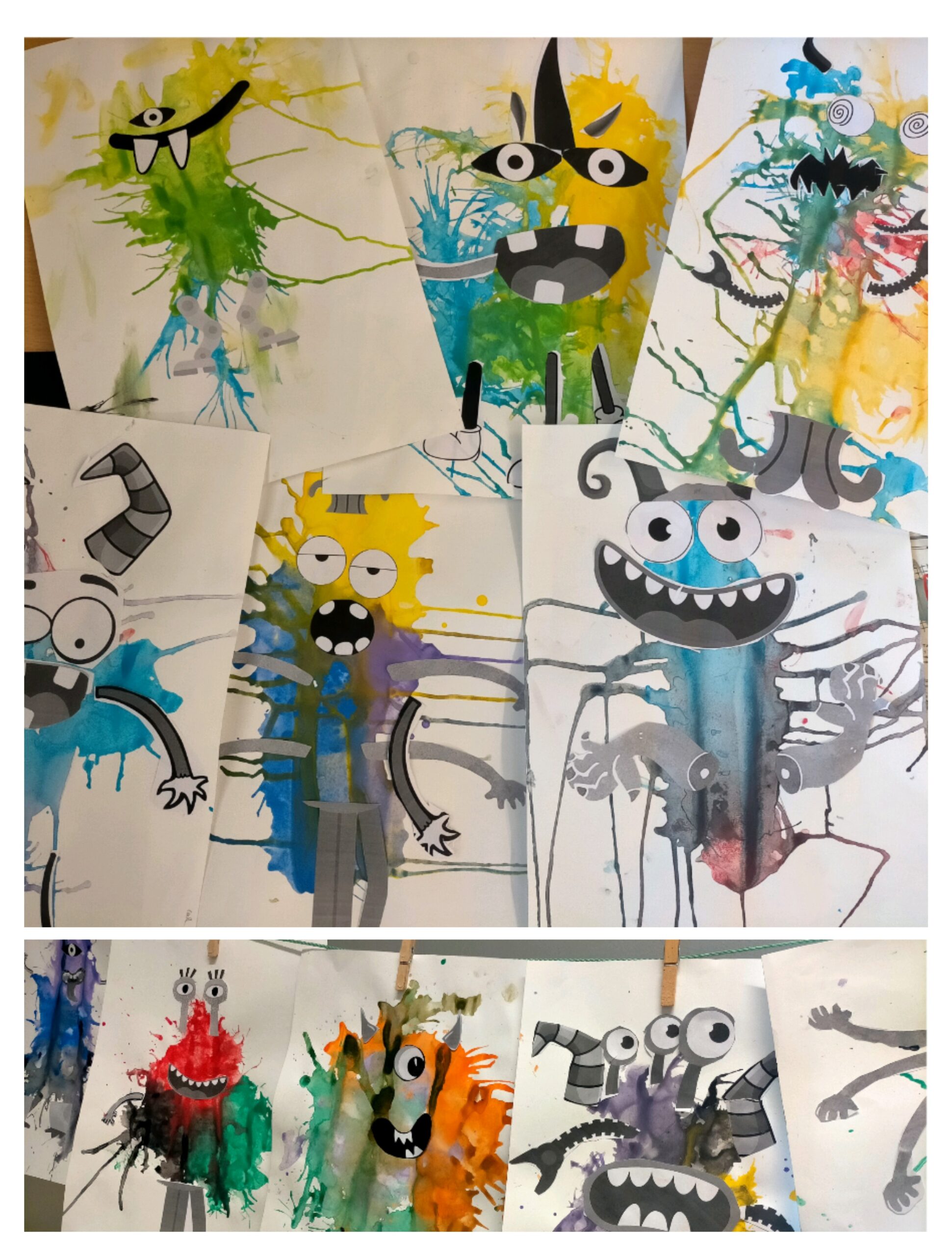 Ho hem fet a partir d’una taca de color i hem afegit algunes parts del cos. Ens vam divertir moltíssim i ens han quedat uns extraterrestres de pel·lícula. Si els voleu veure, cliqueu al següent enllaç. Esperem que us agradin perquè ens acompanyaran durant tot el curs.