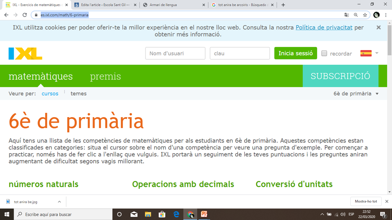 Per a tots aquells que us sembla bé dedicar una mica de temps a no rovellar-se aquí us deixo unes orientacions per a fer exercicis on line de diferents àrees.  Cada un ha de decidir que vol fer i quanta estona i vol dedicar. El que us poso seguidament és orientatiu, per saber on hem d’ anar. Un cop a la setmana  ( el dijous)  farem el retorn i em podeu explicar el que heu fet  enviant-me  un correu electrònic . Si ho feu amb una graella on expliqueu  dia a dia  la feina feta molt millor, Us  animo  també a fer  fotos del que feu per casa, si feu exercicis, dibuixos,  construccions amb els germanets…..Ho publicarem a la web. De moment  ja veieu el de la portada.