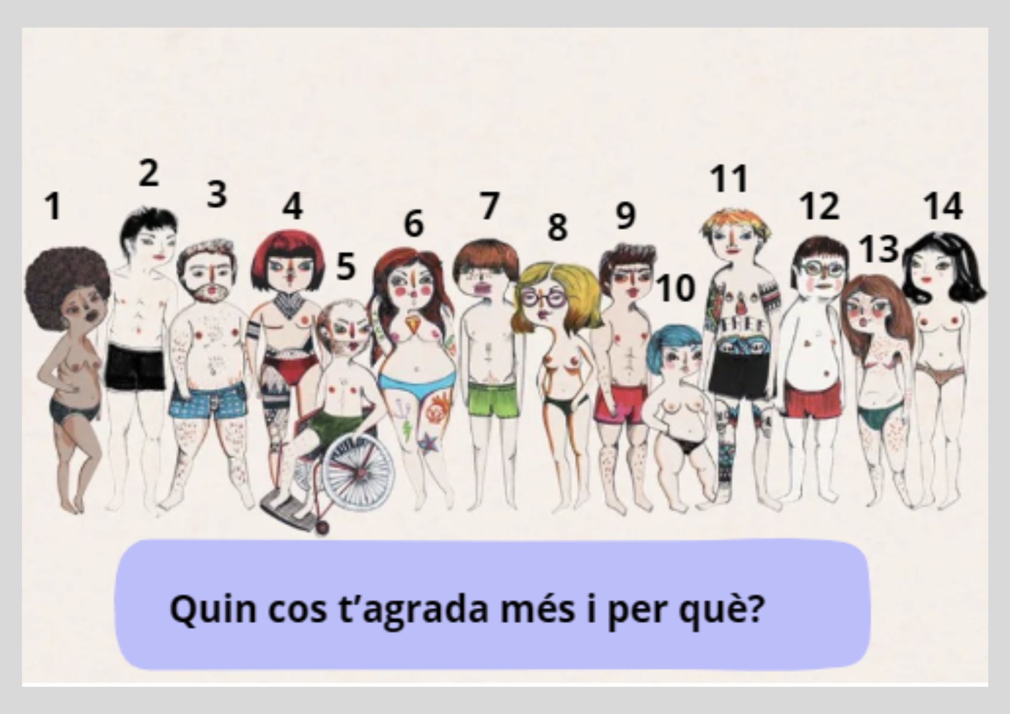 La idea de l’entrevista és presentar una imatge amb 14 cossos diferents i preguntar a l’alumnat: quin cos els agrada més? I per què? Estigueu atents i atentes a les respostes.