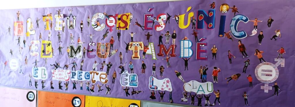 Prèviament, l’alumnat s’han trobat al mirall del centre un missatge que els ha posat en alerta: Compte! La teva imatge en aquest mirall pot estar distorsionada pels cànons de bellesa irreals imposats per la societat patriarcal (Cicle superior), Atenció! Aquest mirall reflecteix la diversitat de cossos. Respecta a tothom, estima’t tal com ets (Cicle mitjà), Atenció, Estima’t tal com ets. Respecta a tothom (Cicle inicial i infantil).