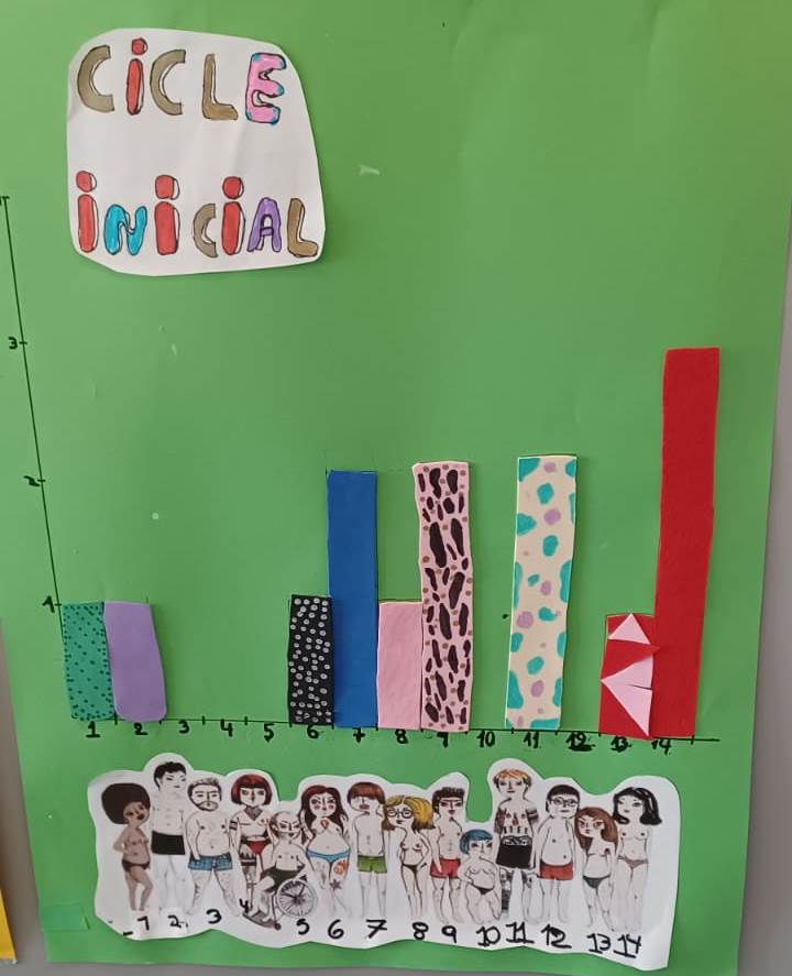 A educació infantil l’elecció de cossos ha sigut més diversa, ja que gairebé han estat escollides les 14 persones que surten a la imatge. Les raons eren per semblances als familiars o als amics i els seus colors preferits.