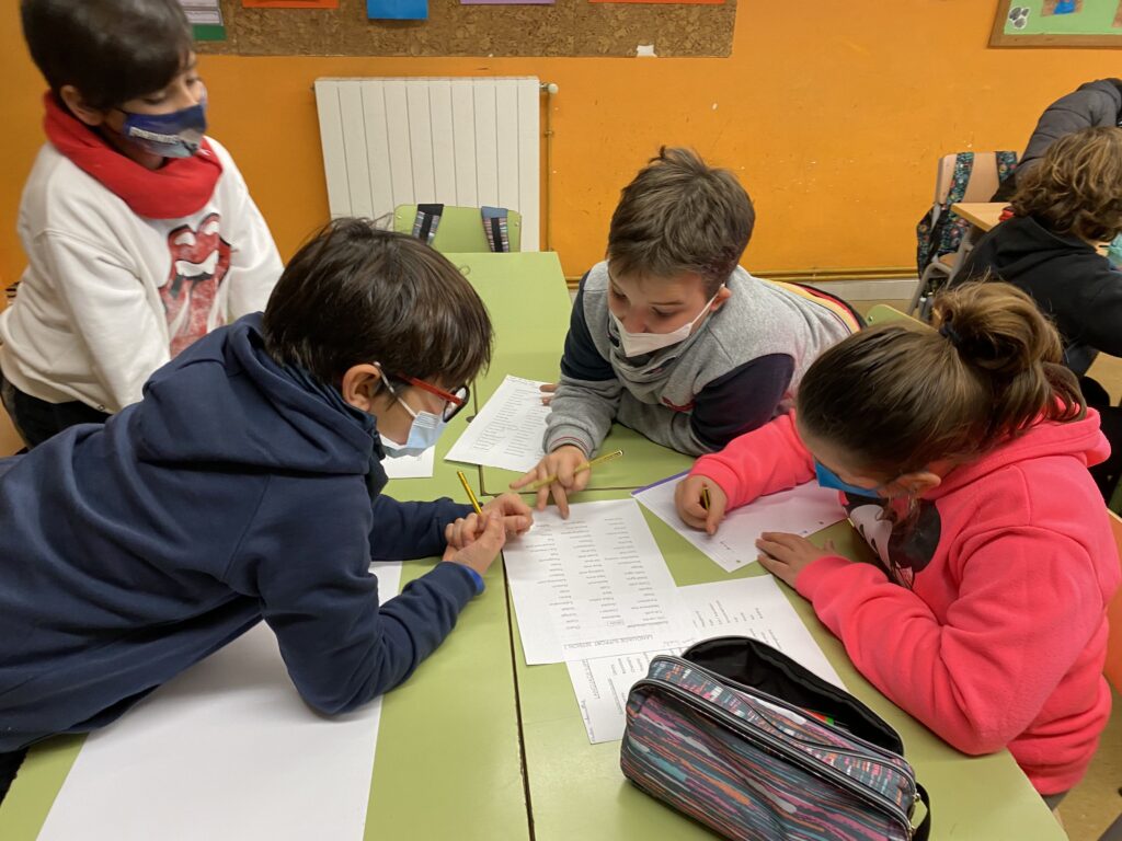 A classe aprenem les matemàtiques jugant i fent diferents reptes en grup.