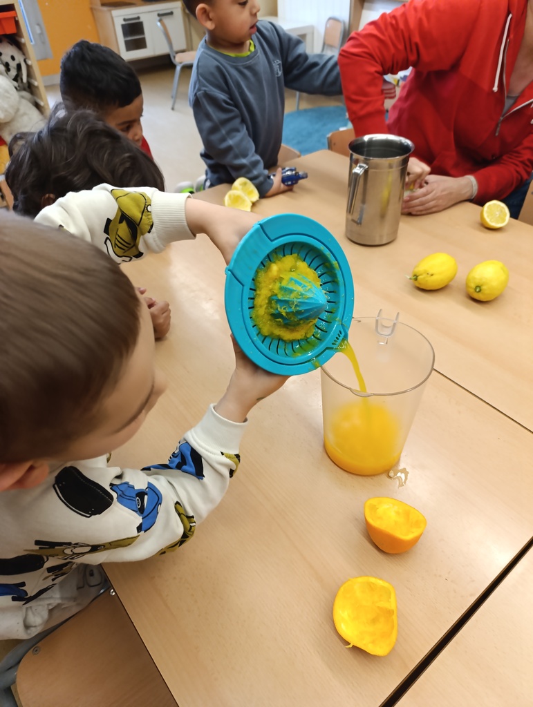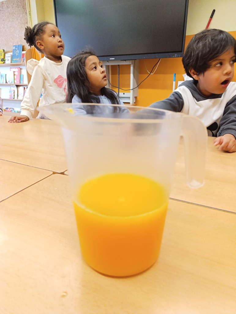 Els nens i nenes d’I3 hem fet una activitat molt especial a l’escola. Hem preparat sucs de taronja i de llimona, però d’una manera molt especial: els hem exprimit amb les mans, sense utilitzar cap aparell elèctric.