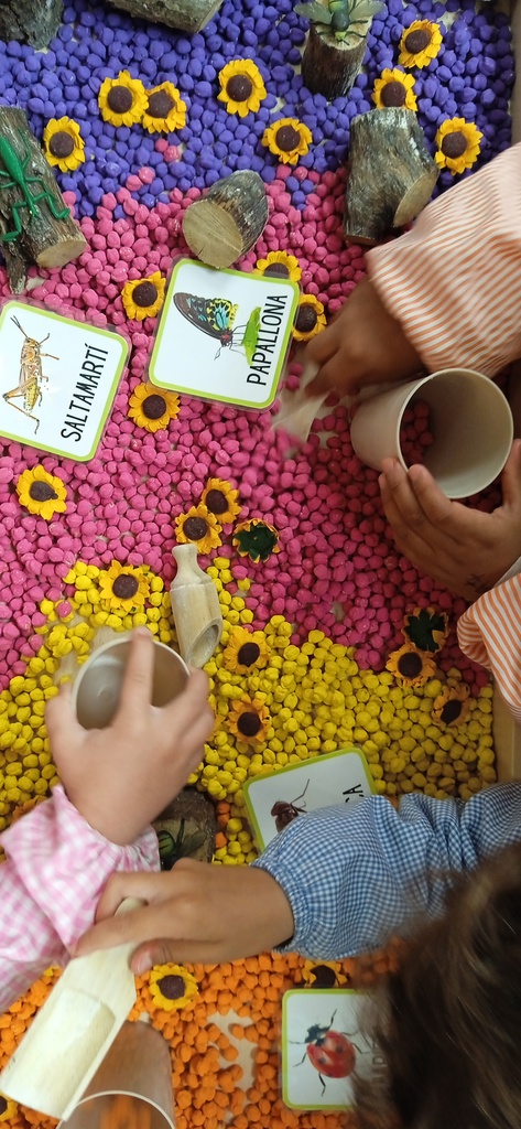 D’una banda, als racons autònoms, els infants han pogut experimentar lliurement a la taula d’experimentació de primavera i gaudir del joc simbòlic a la cuineta, potenciant la creativitat, la descoberta i la interacció entre iguals.