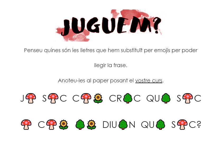 Cada setmana, els alumnes de 4rt, 5è i 6è tenen un repte penjat al passadís. Durant tota la setmana el poden respondre i els divendres pengem els resultats. A veure com va aquesta setmana. Ànims!