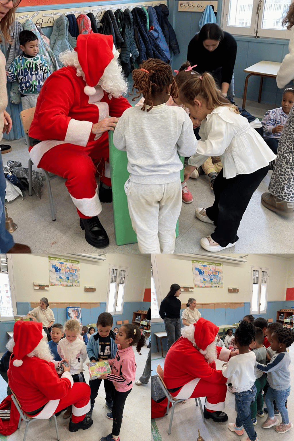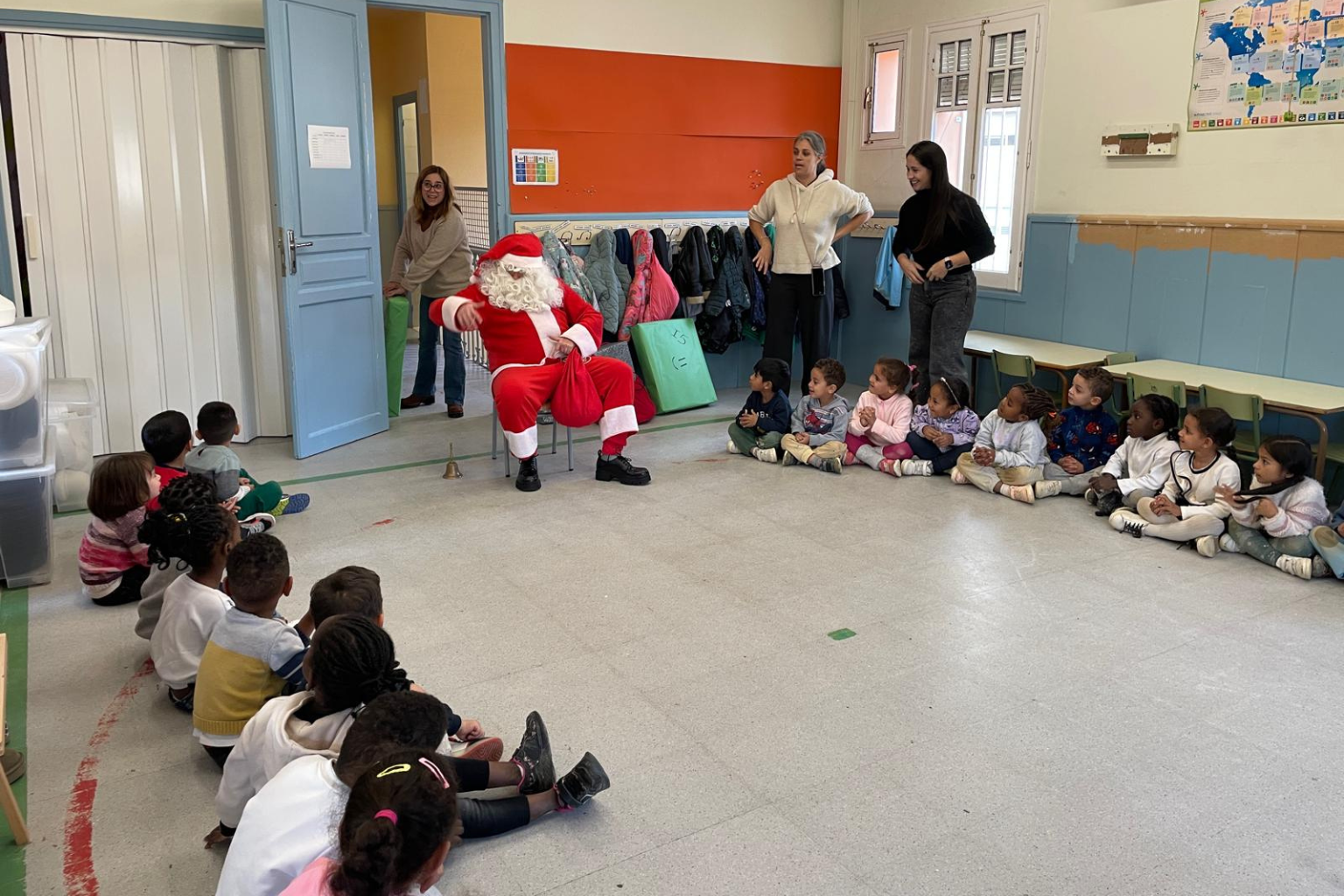 Els infants han quedat bocabadats quan l’han vist entrar, amb el seu vestit vermell i el sac ben ple. Tots l’han rebut amb somriures, ulls brillants i molta il·lusió. I el més emocionant de tot: ha portat REGALS PER A CADA CLASSE!