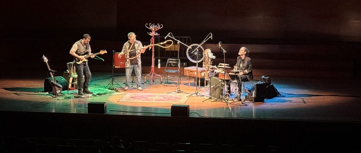Els tres músics, amb diferents materials quotidians i reciclats, han creat diferents instruments de vent, de corda i percussió, els quals han tocat molt i molt bé.