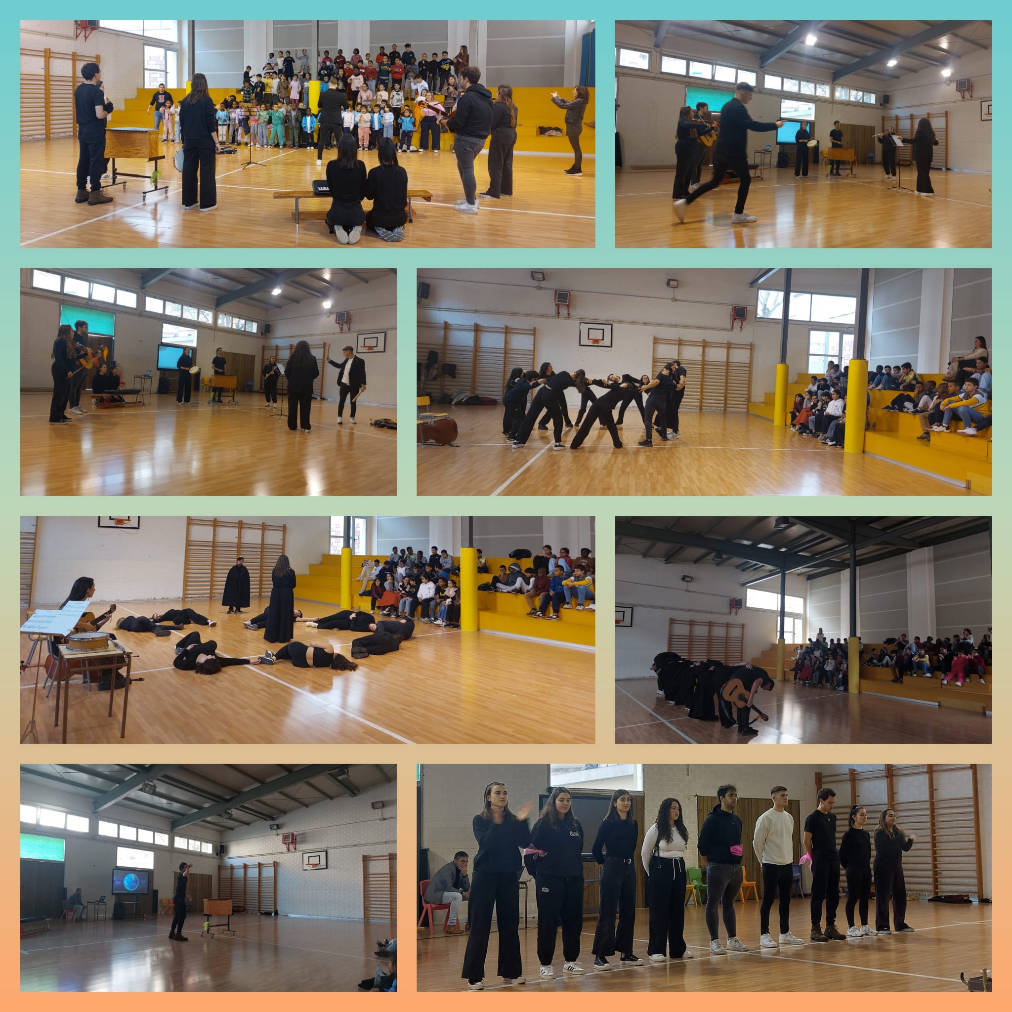 Dues històries explicades amb música, ball, teatre i audiovisuals amb les quals els nostres alumnes van descobrir les famílies d’instruments i la música a l’Edat Mitjana.