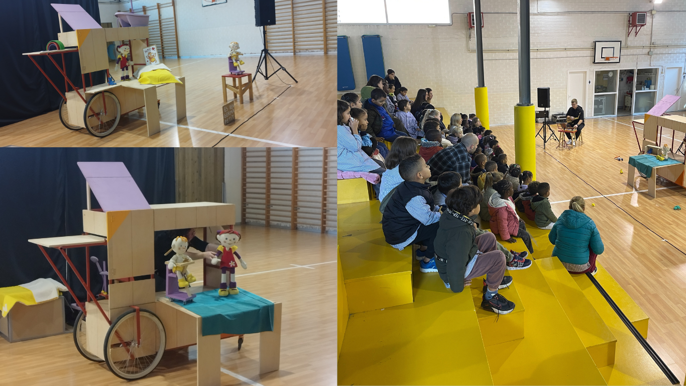 Aquest dimarts dia 11 de novembre, els nens i nenes d’educació infantil i primer, hem anat a l’escola dels grans. Allà ens han vingut a visita uns titellaires molt divertits i hem pogut gaudir de la representació de ES VEN GERMÀ PETIT.