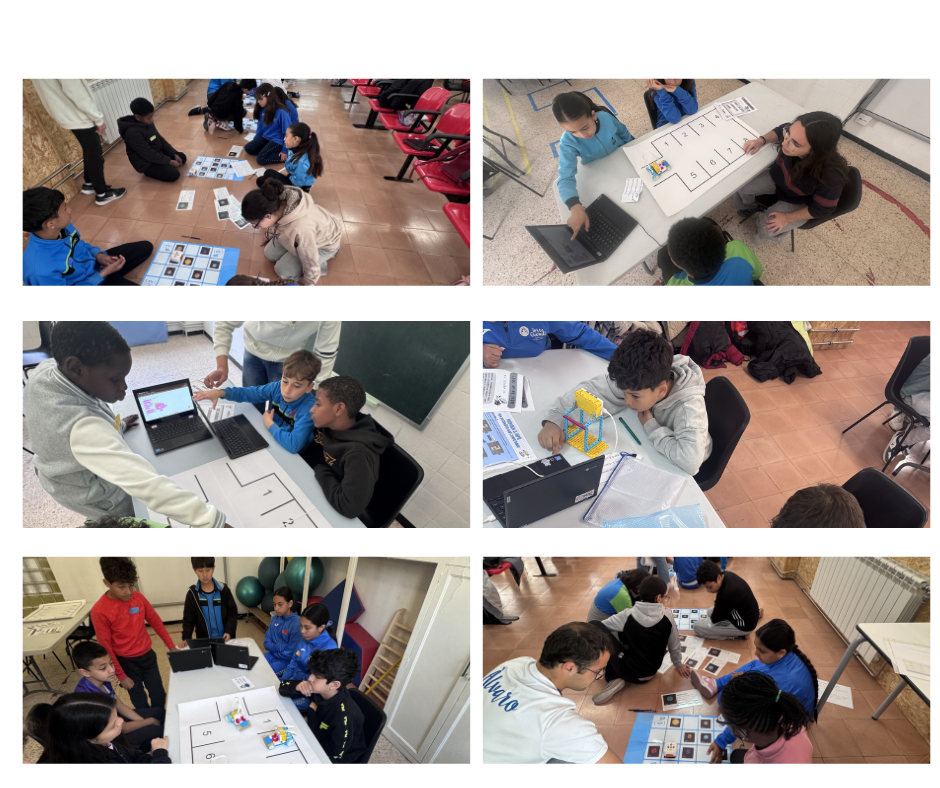 Al llarg del matí, es van dur a terme diversos espais i tallers organitzats pels mestres, amb reptes relacionats amb la robòtica i el pensament computacional. L’alumnat dels diferents centres es va distribuir en grups barrejats, fet que va afavorir la cooperació, l’intercanvi d’idees i el treball en equip entre alumnes de les tres escoles.