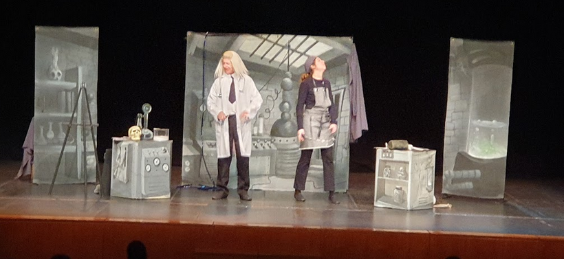 Last Tuesday we went to the theatre. We saw the play Frankenstein. It was very funny. Some of the students helped the actors. At the end we could ask some questions. We had a great time!
