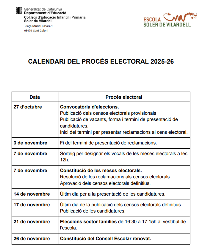 Eleccions al Consell Escolar 2025-2026 Feu un comentari / Per admin / 27 d'octubre de 2025 / General Portada