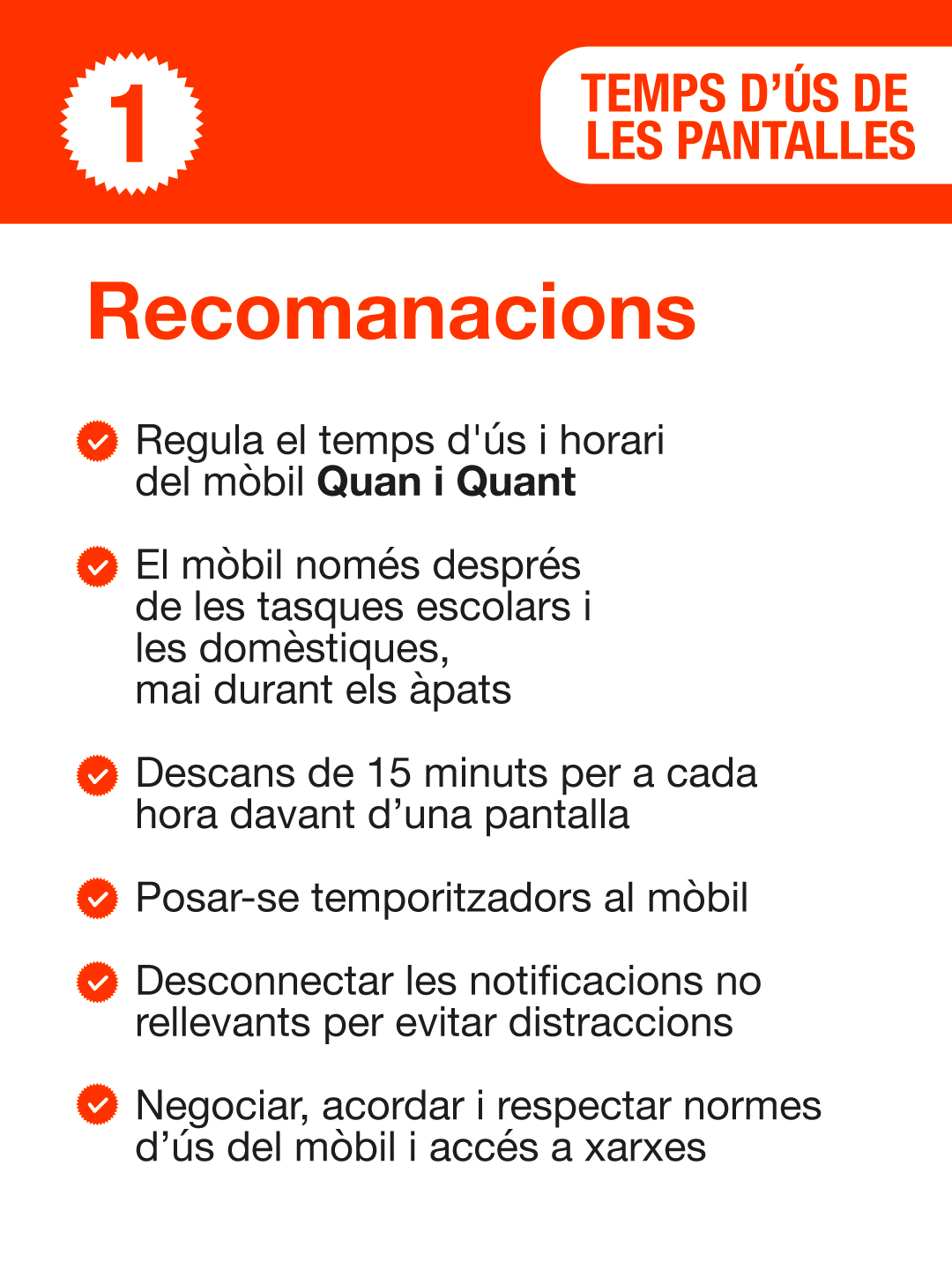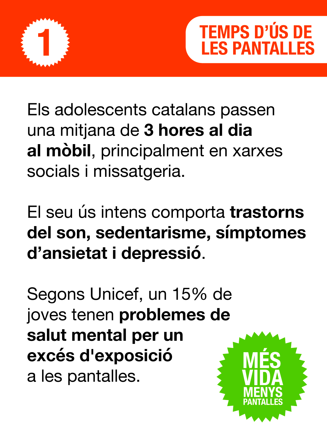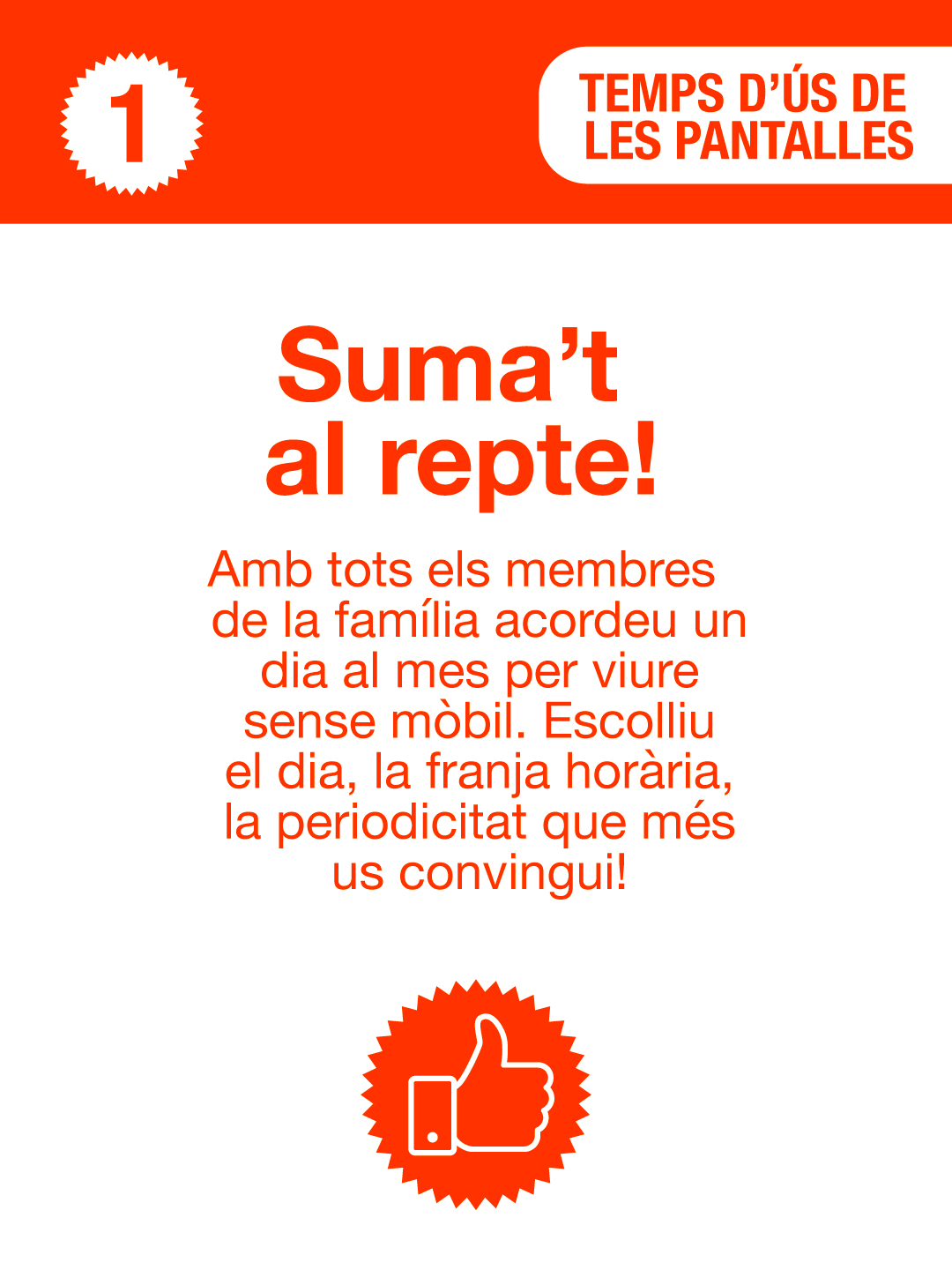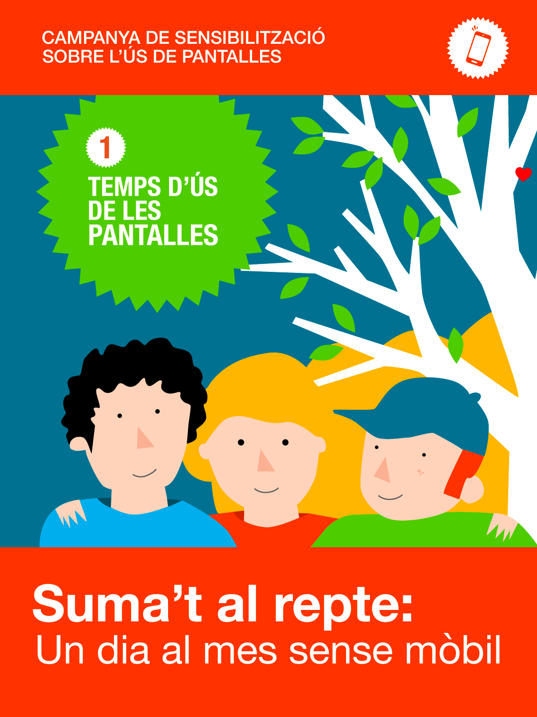 El primer tema que es proposa és “El temps d’ús de pantalles”, amb el repte “Un dia sense mòbil”.