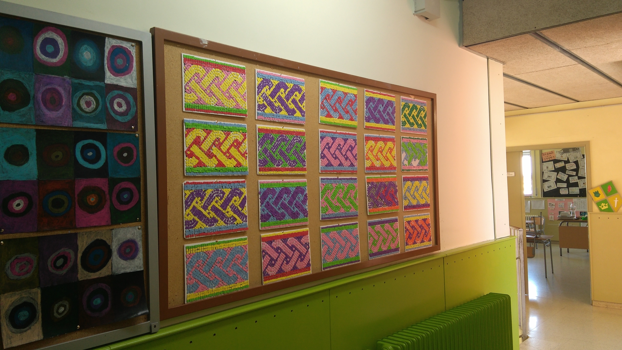 A cicle superior, el grup de 5è va estudiar aquesta vegada l’art de l’antiga Roma. Després de veure alguns exemples com ara l’escultura i l’arquitectura, la temàtica d’aquestes sessions es va centrar específicament en els mosaics tan característics d’aquesta civilització. El material emprat va constar de làmines de cartró ploma com a base per l’obra, un model en paper pegat sobre la làmina, goma eva de diferents colors que tenia que ser retallada seguint la mida del model com a guia i pegament en barra i silicona freda. Així doncs, els nens i nenes van poder escollir els colors a utilitzar i després d’un meticulós treball van obtindre una autèntica obra d’art llatina. Les obres poden veure’s exposades al taulell del costat de la classe de 5è, al segon pis de l’escola.