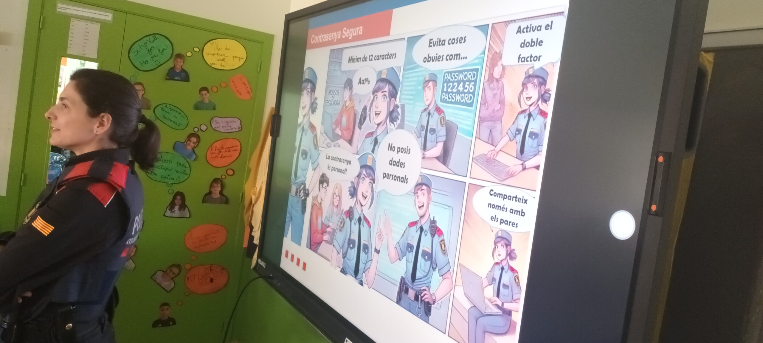 Avui, 8 d’abril, ens han visitat les 3 mossos d’esquadra , la Míriam , la Pau i la Carol, per a tractar el tema d’INTERNET SEGURA a les xarxes socials.