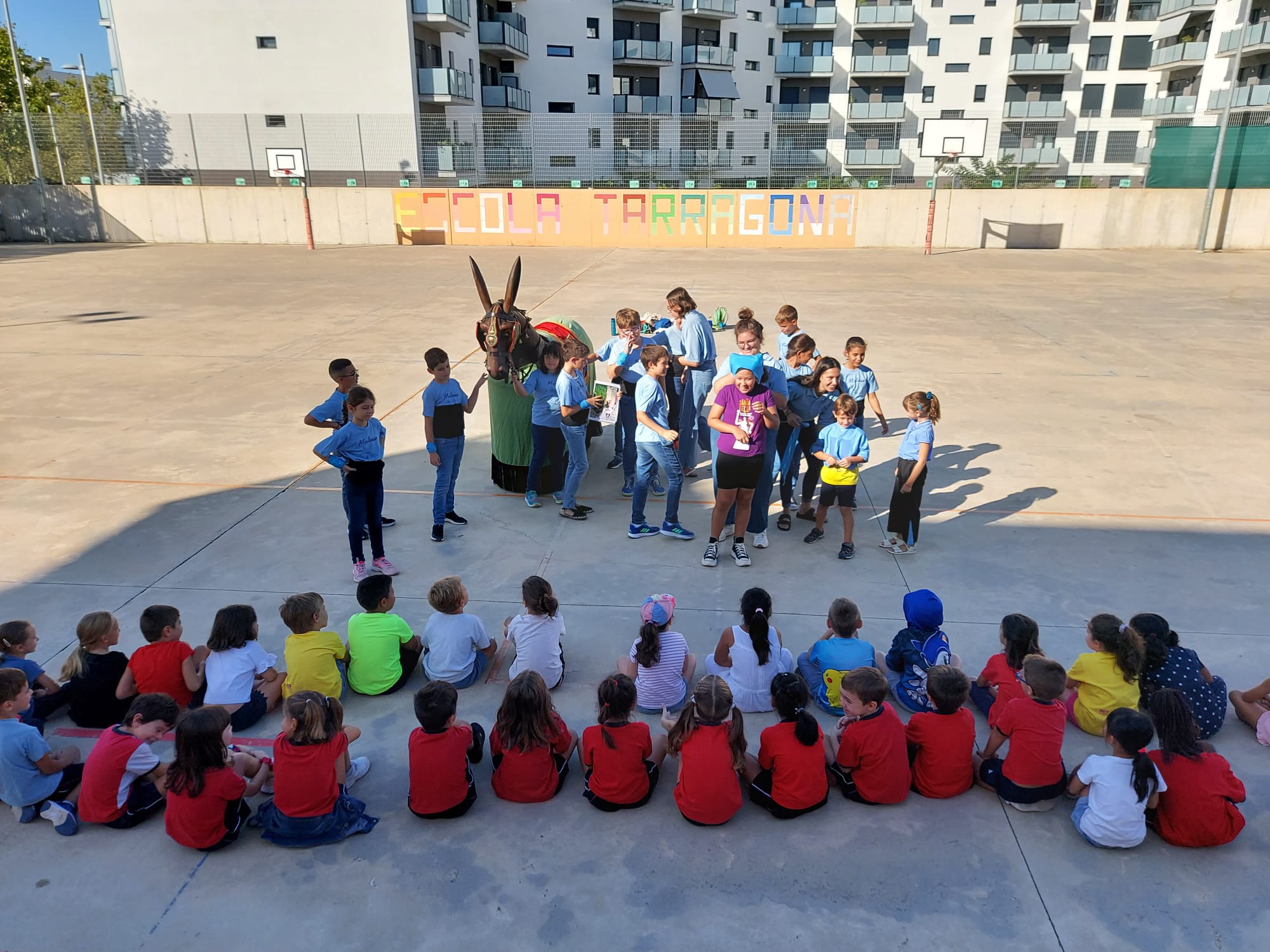 Aquest matí tot l’alumnat de l’Escola Tarragona hem rebut la visita de la Mulasseta! Aquesta bèstia tan divertida forma part del Seguici Popular de Tarragona i aprofitant que ja han començat les Festes de Santa Tecla ens ha vingut a veure! Com que la mulasseta és tan juganera hem ballat amb ella al so de la gralla acompanyada de les campanetes que llueix a la frontera. Quin matí més festiu que hem passat!