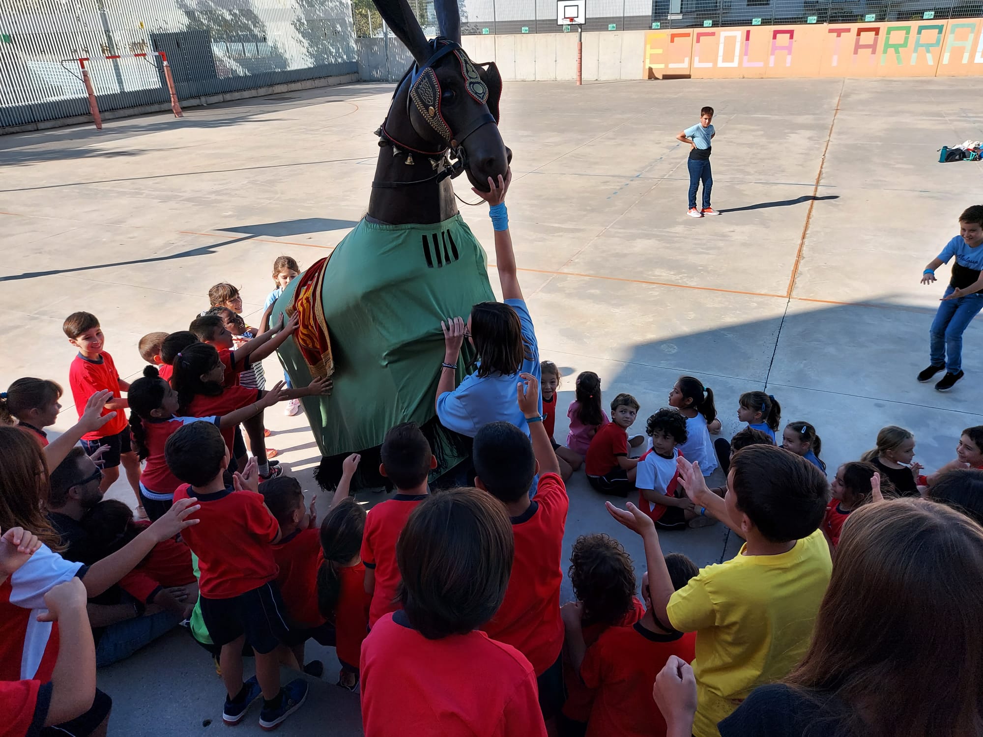 Aquest matí tot l’alumnat de l’Escola Tarragona hem rebut la visita de la Mulasseta! Aquesta bèstia tan divertida forma part del Seguici Popular de Tarragona i aprofitant que ja han començat les Festes de Santa Tecla ens ha vingut a veure! Com que la mulasseta és tan juganera hem ballat amb ella al so de la gralla acompanyada de les campanetes que llueix a la frontera. Quin matí més festiu que hem passat!