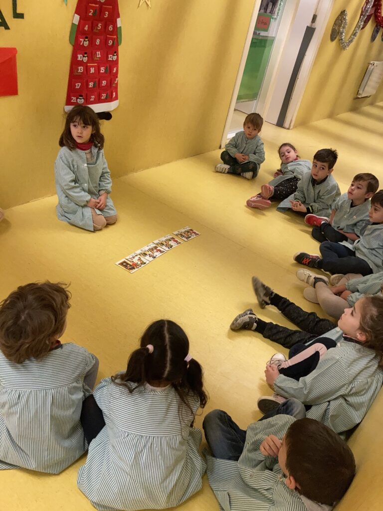 Durant aquest mes de desembre cada dia sortim al passadís per comptar els dies que falten perquè arribi el dia de Nadal. Cada nen i nena ha de superar una prova per guanyar-se una sorpresa: una llaminadura ben dolceta!