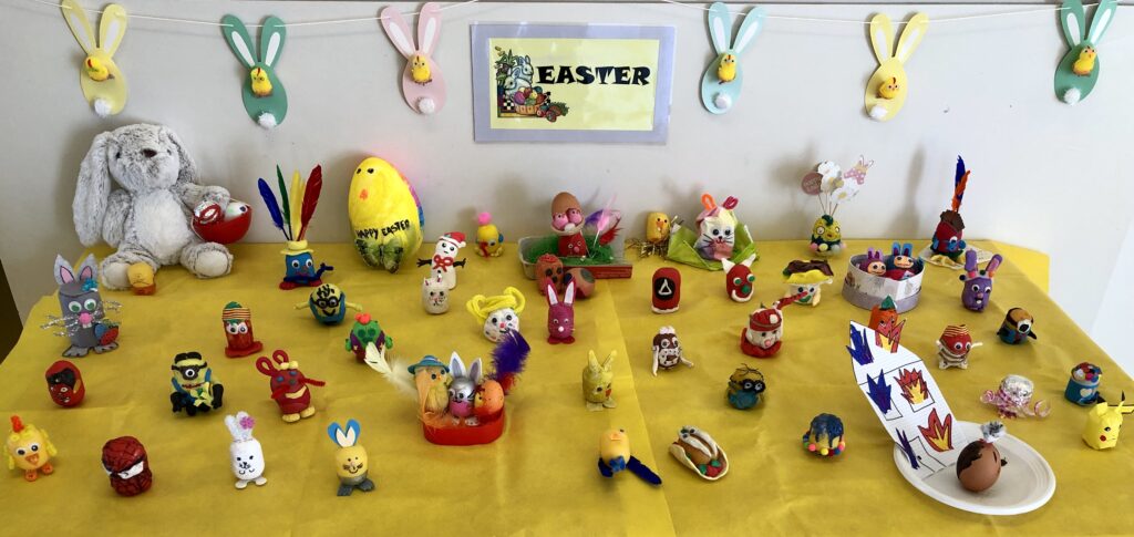 We displayed the Easter eggs we had created in the hallway. Everyone who passed by was amazed!!!