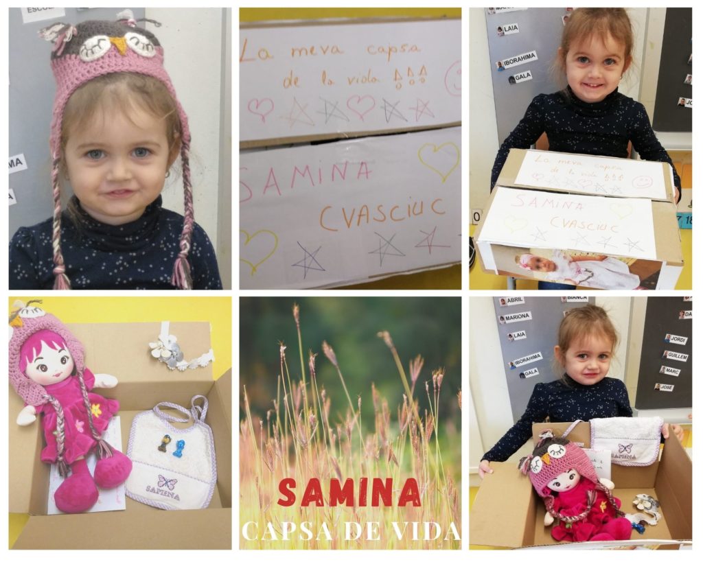 La dolça Samina ens va presentar la seva Capsa de vida amb tanta il·lusió que la seva mirada ho deia tot. Una capsa decorada amb dibuixos de cors i estrelles, amb fotografies i acompanyada d’un escrit orientatiu.