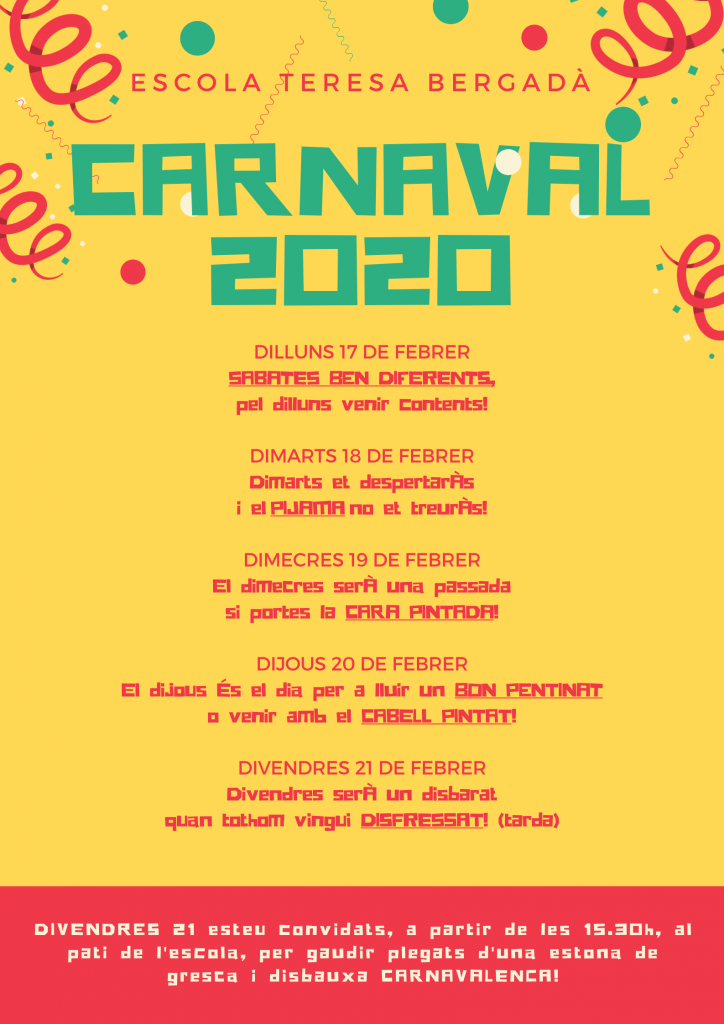 Tornem a celebrar la Festa de Carnestoltes a l’Escola Teresa Bergadà.