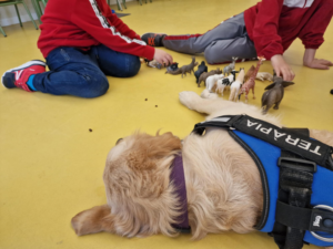 Aquest segon i tercer trimestre s’han realitzat un total de 9 sessions d’educació assistida amb animals, dividides en dos grups d’alumnes. Han estat intervencions dins el context educatiu amb la participació del Tom, el Tet i amb l’acompanyament de la Laura. Els objectius plantejats pretenien promoure millores en l’àmbit físic, social, emocional, educacional i cognitiu dels infants del SIEI. Fomentant sempre la creació de vincles emocionals que ajuden als infants a desenvolupar i millorar les habilitats motrius, cognitives, comunicatives i emocionals.