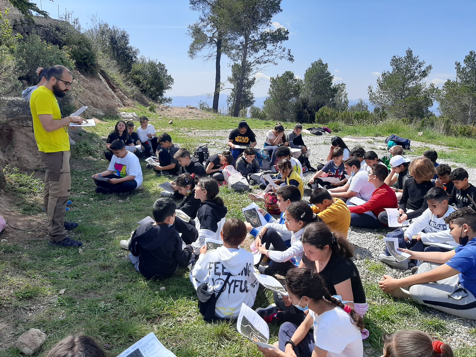Amb les forces recuperades vam començar l’activitat d’orientació. Vàrem recórrer tot el cim del Puig de la Creu, buscant fites, pistes i preguntes per respondre.