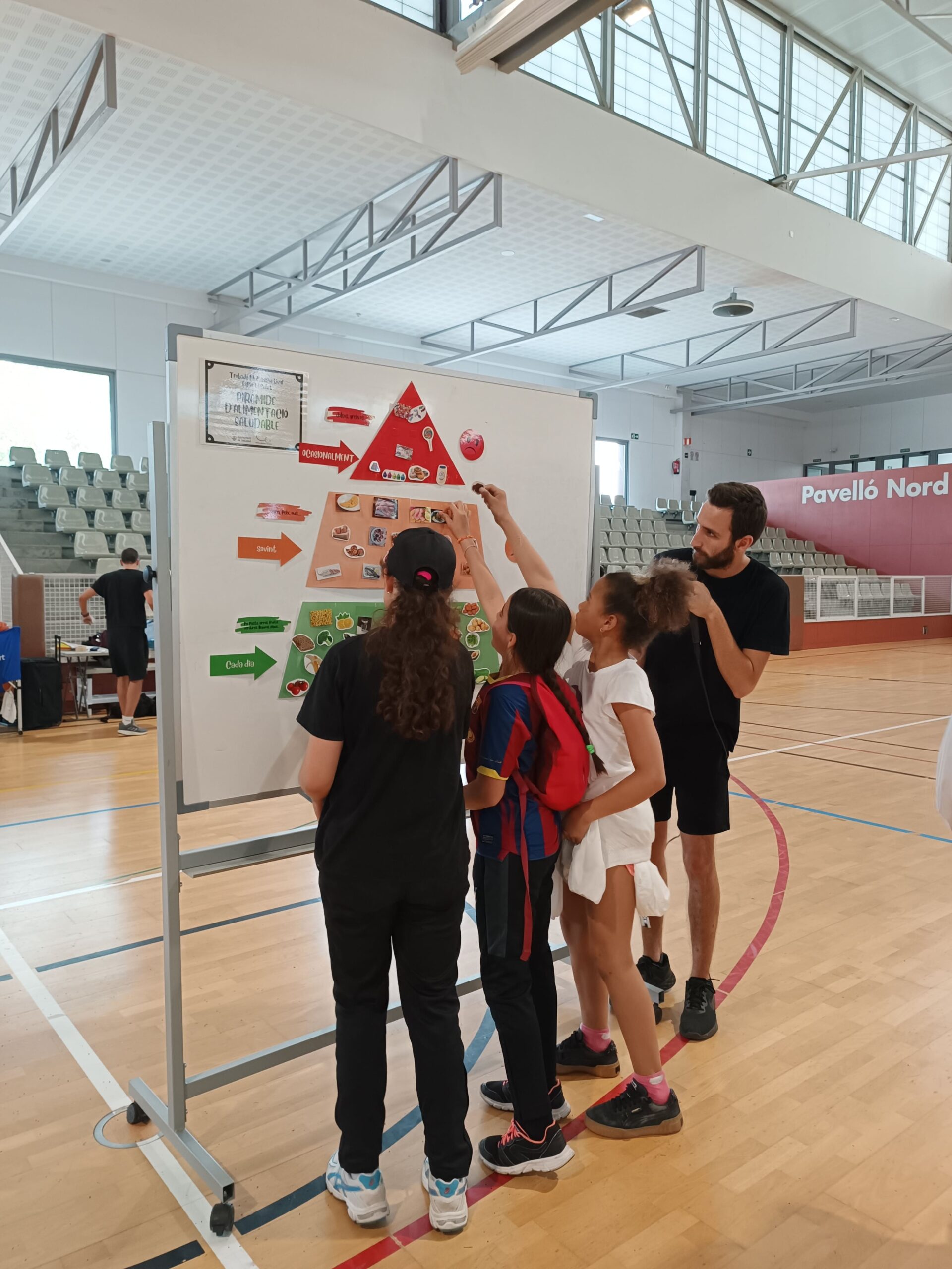L’alumnat de cinquè i sisè, el passat divendres, vem anar al pavelló Nord convidats pel Servei de Salut Comunitària de Sabadell. Els alumnes de l’Institut Agustí Serra i Fontanet ens van preparar un munt d’activitats a l’aire lliure; des de classes de ball a jocs cooperatius. A cada estació vem aconseguir un aliment que, posteriorment, vem incloure en una piràmide d’hàbits alimentaris saludables.