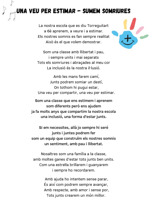 L’alumnat de 6è crea una cançó per a la Gala Més Somriures: Una bonica experiència a favor de l’educació inclusiva.