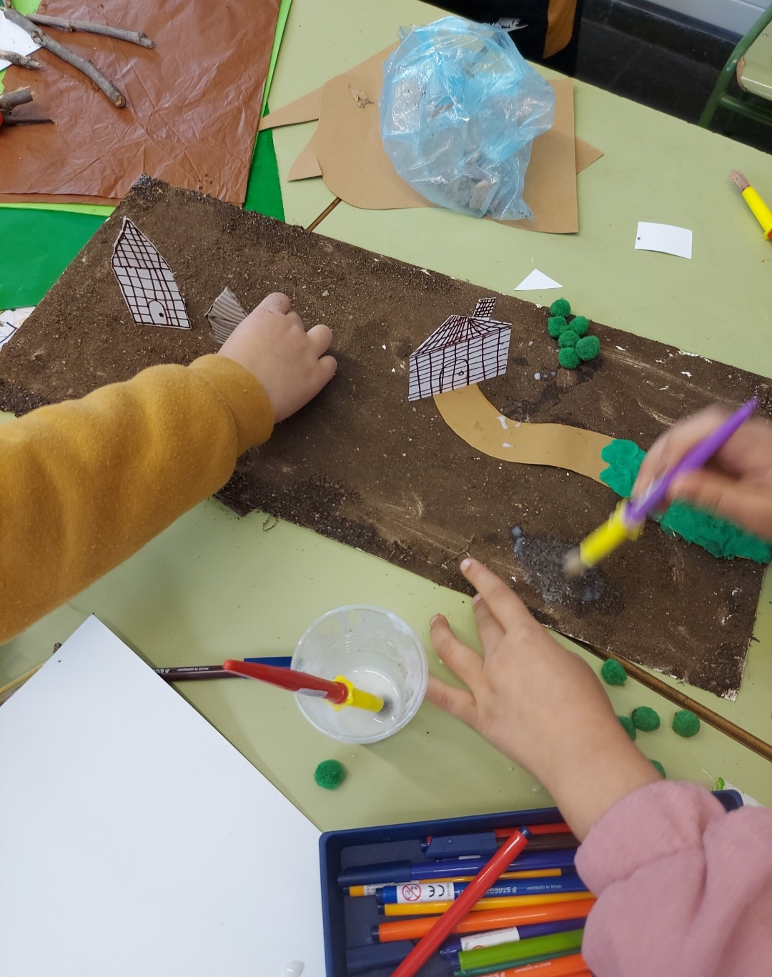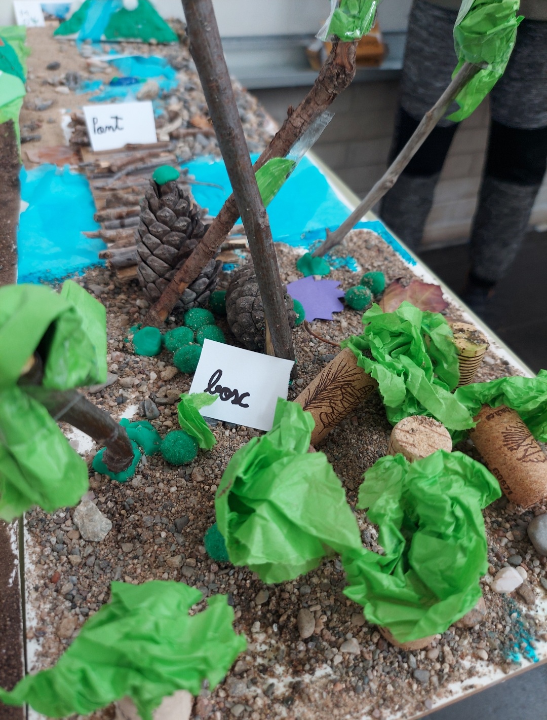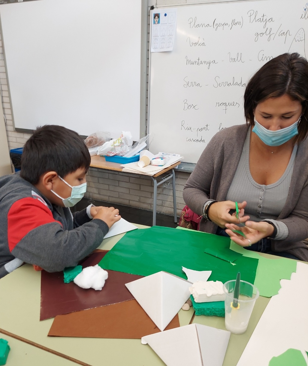 Primer hem vist fotos de paisatges i hem fet una pluja d’idees sobre les coses que vèiem. La Miriam i la Bea ens han ensenyat algunes paraules de vocabulari que no coneixiem i tots junts hem fet una gran llista. Hem parlat sobre les muntanyes, les serres, els rius, els penya-segats… i ens han sortit dues preguntes que haviat començarem a investigar: