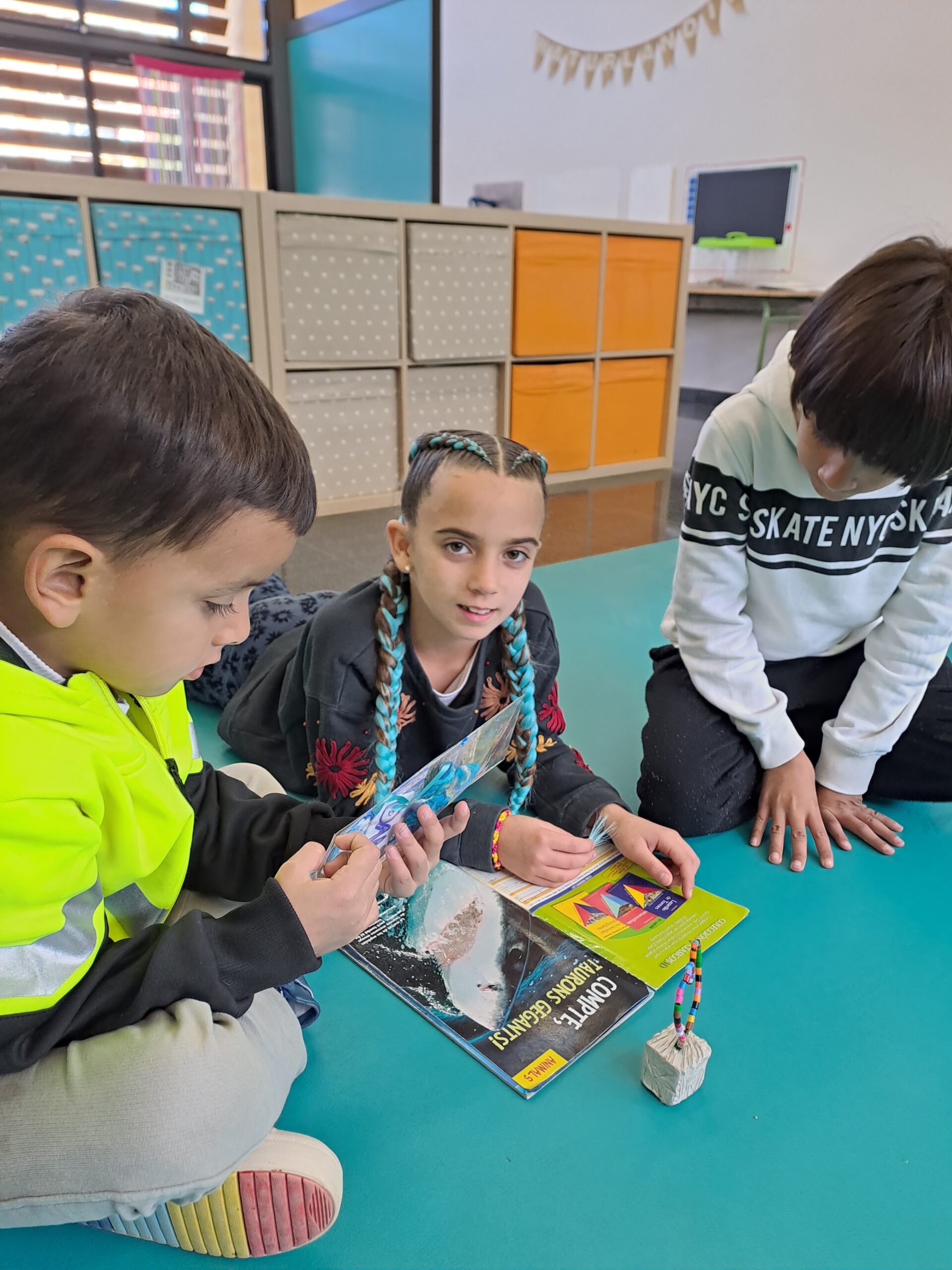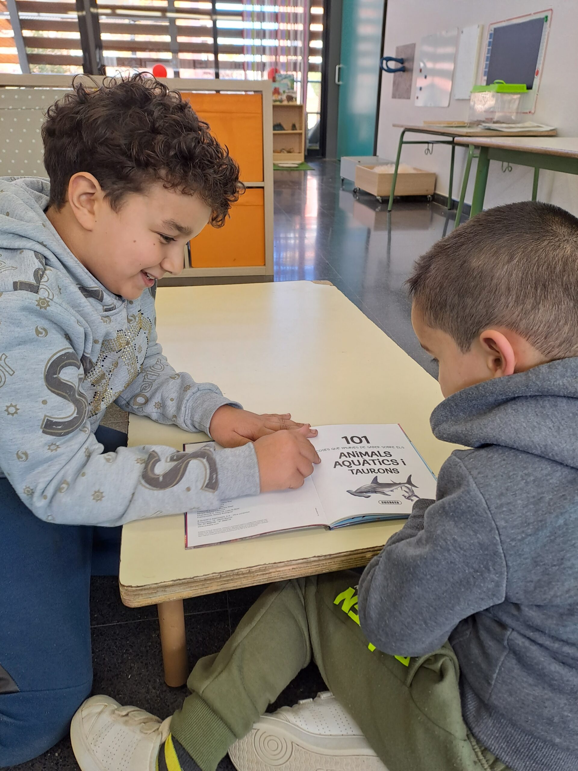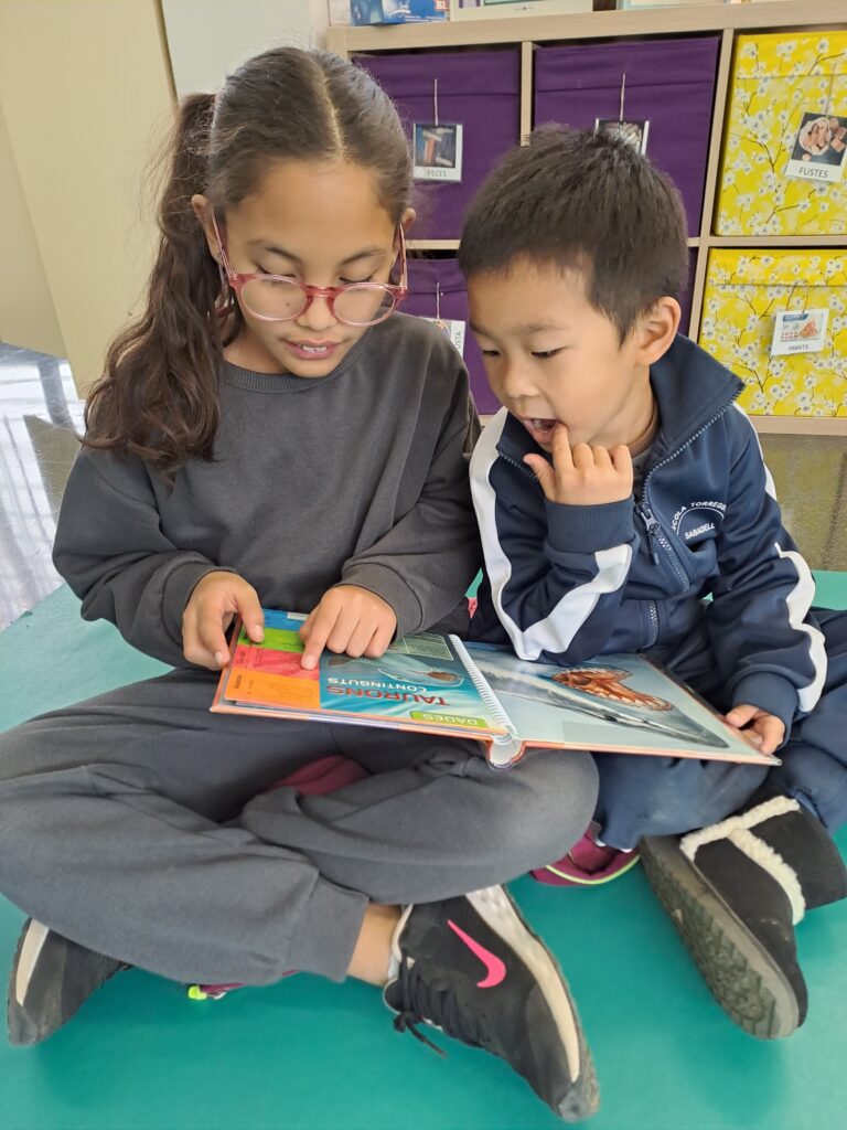 Avui, les nenes i els nens de 4t han fet una visita a la classe dels seus fillols i filloles, la classe d’I5.