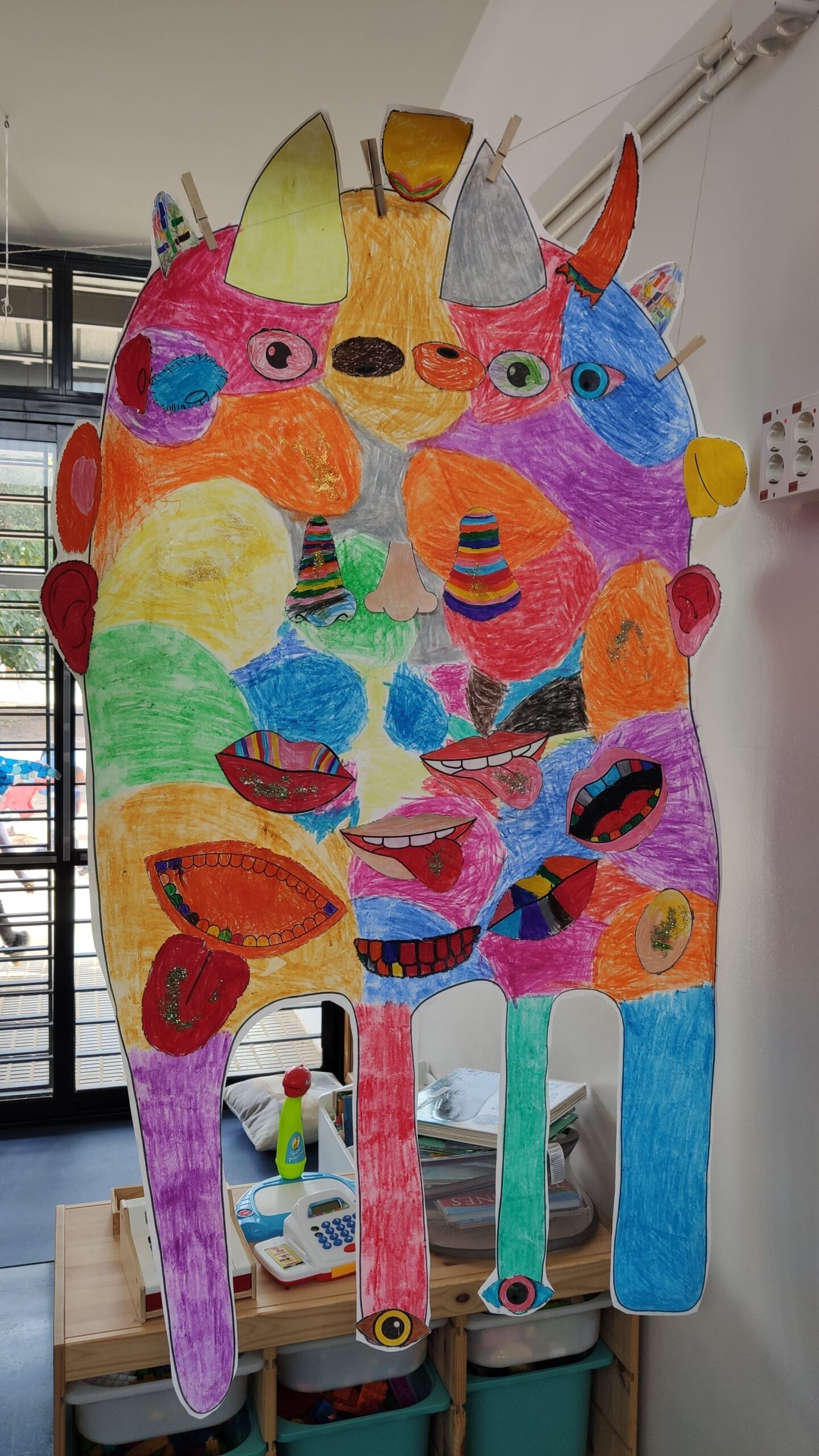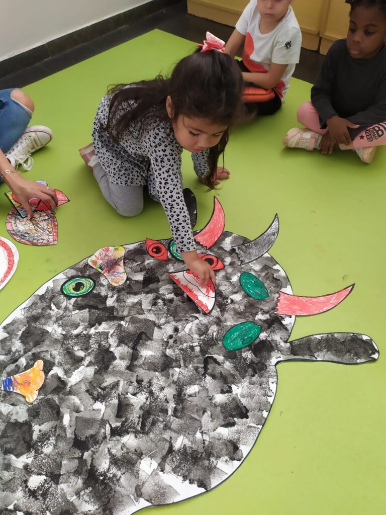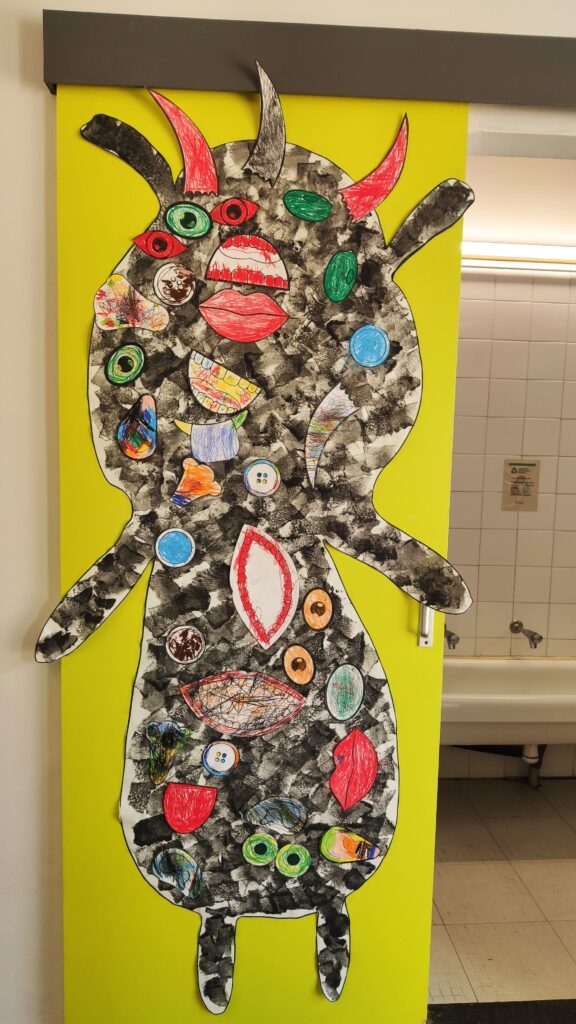 Tant a Educació Infantil com a primer de primària, els i les alumnes hem dissenyat i pintat un monstre gegant, coneixent-ne les parts del cos i deixant-se endur per la creativitat.
