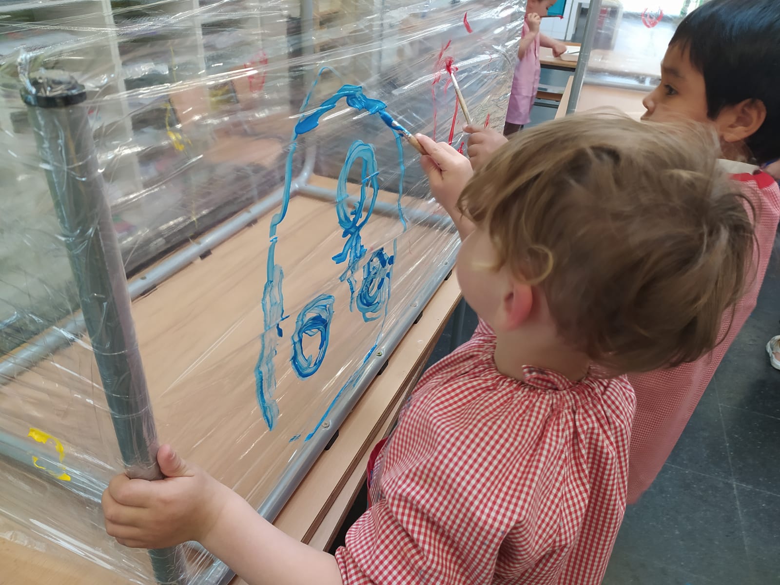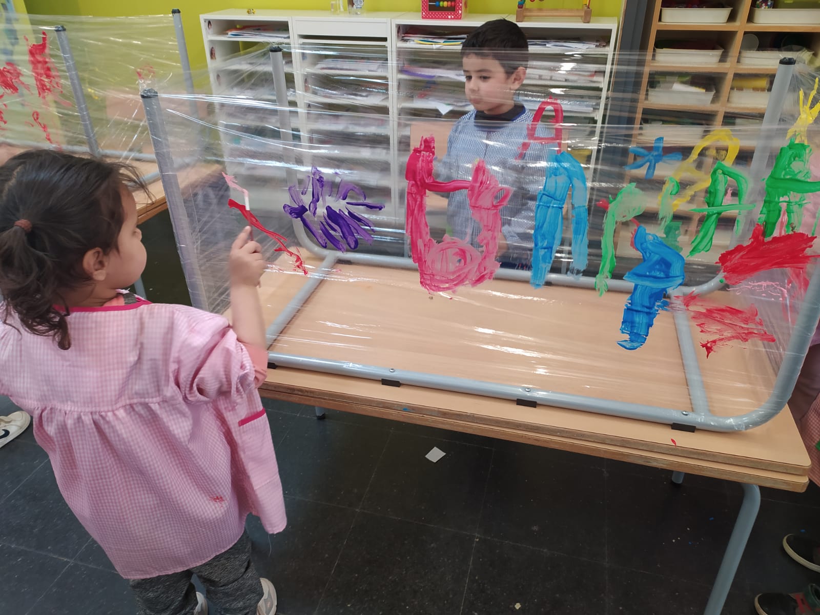Quan la MªAngeles i la Maria es posen la bata… ja saben que toca  una activitat de pintura! Els hi agrada tan…