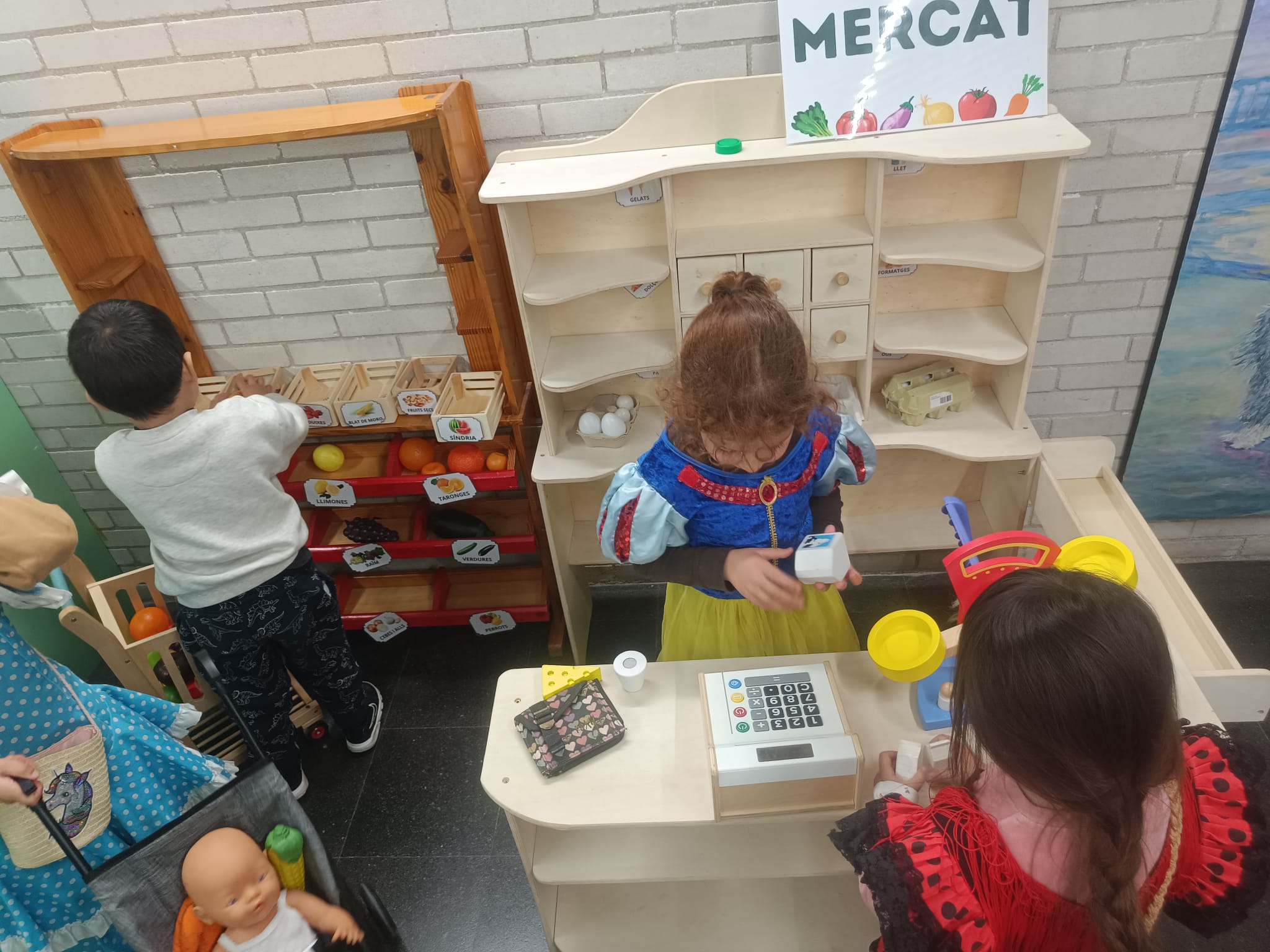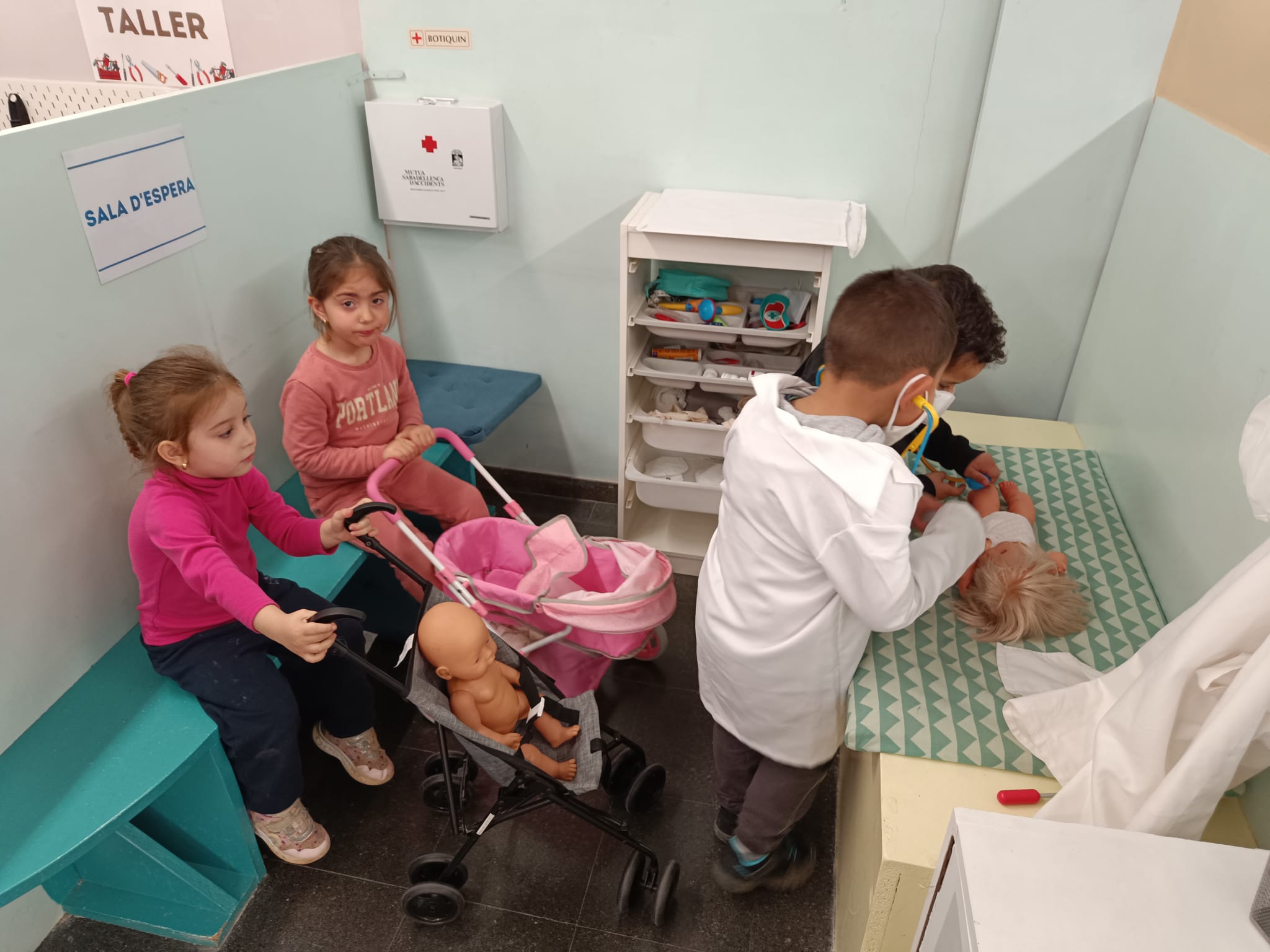 Ens continua encantant anar a la ludoteca! És una autèntica emoció anar a jugar-hi! Els set espais dels quals disposem són: la botiga, la cafeteria, la casa, el metge, el taller, l’aeroport i les disfresses. Cada setmana juguem en 3 o 4 espais que acordem entre tots. Hi anem un cop a la setmana amb mig grup.