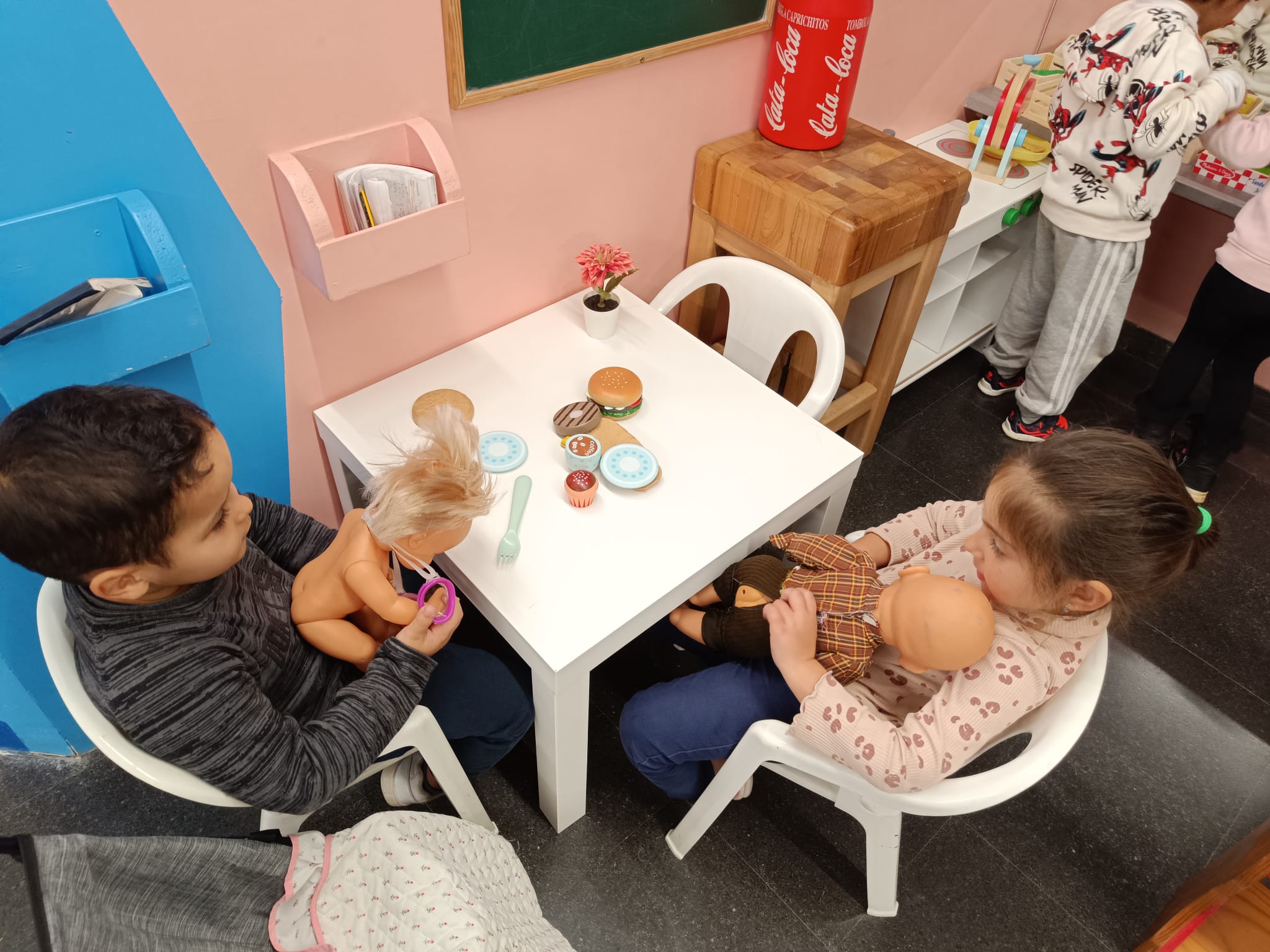 En aquesta estona, s’afiancen les relacions entre ells/es, comparteixen molts bons moments gràcies al joc! A més, de fomentar el diàleg i l’expressió oral realitzant els diferents rols dels espais.