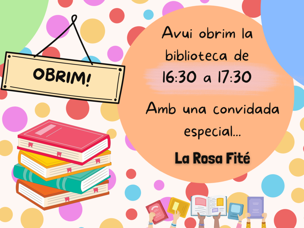 Benvolgudes famílies, aquesta tarda en horari de 16:30 a 17:30 obrirem la biblioteca per a tots vosaltres. Ja sabeu que podeu venir amb els vostres fills i filles.