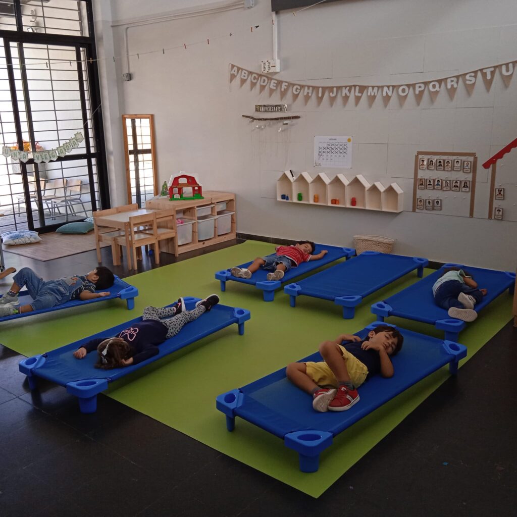La classe de les fruites fan la migdiada. Dormen, es relaxen i es preparen per continuar la jornada.