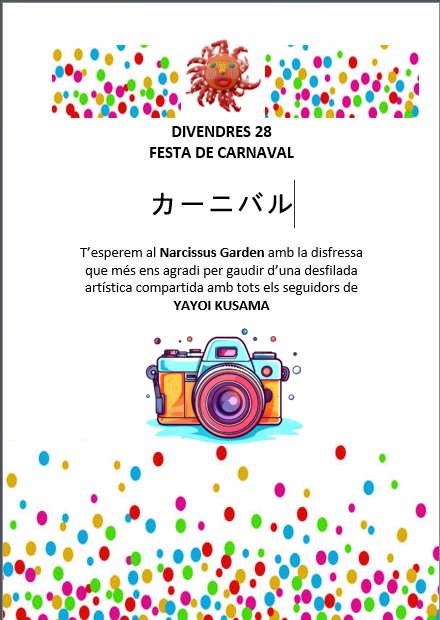 Ja tenim el carnaval a tocar, i aquest curs ens hem inspirat en el treball que estem fent sobre l’artista japonesa Yayoi Kusama per ambientar-lo.