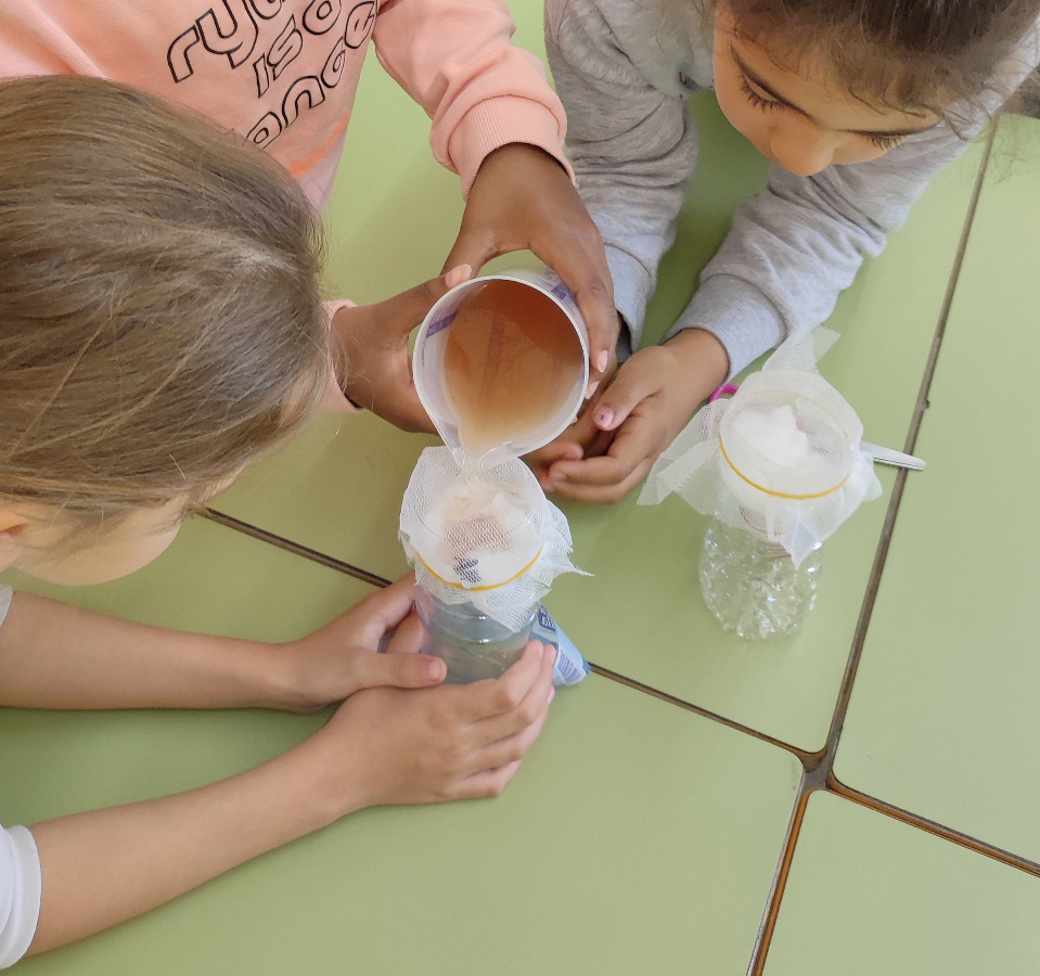 Avui les nenes i nens de 3r hem fet un taller sobre l’aigua. Hem reflexionat sobre la importància de l’aigua potable per a les persones i la necessitat de fer-ne un ús responsable. Després hem creat un filtre d’aigua casolà i hem aconseguit depurar aigua bruta!