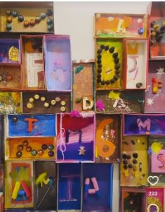 Cada infant haurà de portar una tapa de capsa de sabates, decorada amb la inicial del seu nom. Poseu diferents materials a l’abast dels nens/es i que deixin anar la seva imaginació. Segur que sortiran coses molt interessants. Us posem un exemple perquè us feu una idea del que us demanem.